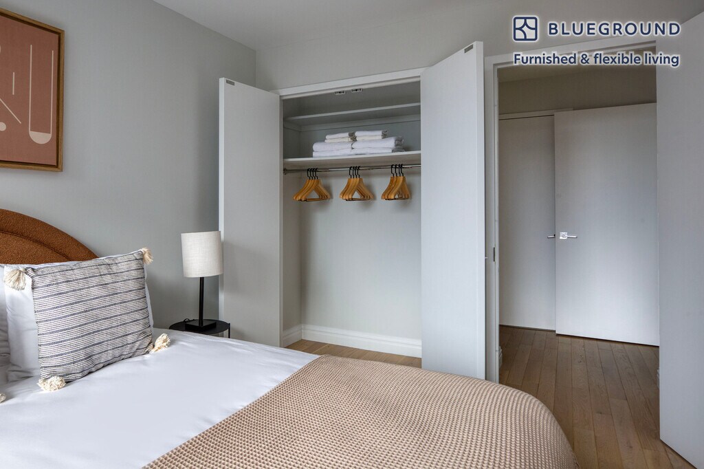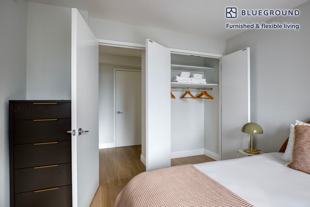 Feel at home wherever you choose to live with Blueground. You’ll love this cozy Theater District furnished two bedroom apartment with its modern decor, fully equipped kitchen, and roomy living room with great balcony views. Ideally located, you’re close to all the best that New York has to offer! (ID #NYC381) The advertised rate of $7,840/month is the lowest available price, based on a 1 month(s) and 29 day(s) stay with a move-in date of February 25, 2026. If you’re looking for a 1-year stay, the rate is $8,930/month. Rates vary depending on the duration of stay, season, and other parameters. For exact pricing and additional pricing components, please visit our website and enter your desired move-in and move-out dates. The rate is applicable when billed upfront; it can be higher if billed in multiple payments. Brokers are welcome to reach out. Were you looking for an unfurnished lease? Try Blueground instead and upgrade from unfurnished to furnished living: - Furnished at rates comparable to unfurnished - No setup or furniture costs - save thousands - Move-in ready - save time, just bring your suitcase Designed with you in mind Thoughtfully designed with bespoke finishes, modern furnishings, and a fully equipped kitchen, you’ll enjoy that “I’m home” feeling with this Blueground apartment. Whether you’re lounging in your bright living room streaming the latest and greatest entertainment on the smart TV or premium wireless speaker, or getting some well-earned rest on the superior quality mattress with luxury linens, you’ll fall in love with everything this Theater District apartment has to offer. Sleeping arrangements King Bed, 70.8in/180cm Double Bed, 55in/140cm Amenities Building amenities unique to this two bedroom apartment include an on-site: - Doorman - Dryer in building - Elevator - Washing machine in building - Lounge - Pets allowed Arrival and ongoing support The entire apartment is yours to enjoy! Throughout your stay, you’ll have access to our Client Experience team through the Blueground App. You can schedule additional cleanings, submit maintenance requests, and view our neighborhood recommendations with just a few taps. We’ll share all details upon confirmation of your stay. Other things to note Building amenities may have an extra cost. This Blueground apartment has flexible lease options, allowing you to book it for one month, a year, or more. Pets are welcome, though weight limits and breed restrictions apply and may incur fees. Brokes CYOF. We take great pride in ensuring every photo displayed is shot in our own units with our actual furnishings. That said, we regularly refresh our decor and furniture arrangement, which may differ from what’s pictured. Also note - Other apartments in this building are undergoing renovations, and you may hear construction noise inside your apartment from time to time [SI]