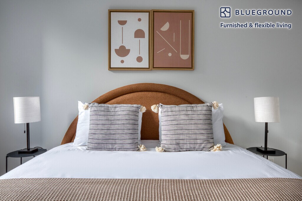 Feel at home wherever you choose to live with Blueground. You’ll love this comfortable Theater District furnished two bedroom apartment with its modern decor, fully equipped kitchen, and roomy living room with great balcony views. Ideally located, you’re close to all the best that New York has to offer! (ID #NYC1348) The advertised rate of $8,090/month is the lowest available price, based on a 2 month(s) and 12 day(s) stay with a move-in date of February 9, 2026. If you’re looking for a 1-year stay, the rate is $8,400/month. Rates vary depending on the duration of stay, season, and other parameters. For exact pricing and additional pricing components, please visit our website and enter your desired move-in and move-out dates. The rate is applicable when billed upfront; it can be higher if billed in multiple payments. Brokers are welcome to reach out. Were you looking for an unfurnished lease? Try Blueground instead and upgrade from unfurnished to furnished living: - Furnished at rates comparable to unfurnished - No setup or furniture costs - save thousands - Move-in ready - save time, just bring your suitcase Designed with you in mind Thoughtfully designed with bespoke finishes, modern furnishings, and a fully equipped kitchen, you’ll enjoy that “I’m home” feeling with this Blueground apartment. Whether you’re lounging in your bright living room streaming the latest and greatest entertainment on the smart TV or premium wireless speaker, or getting some well-earned rest on the superior quality mattress with luxury linens, you’ll fall in love with everything this Theater District apartment has to offer. Sleeping arrangements Queen Bed, 63in/160cm Queen Bed, 63in/160cm Amenities Building amenities unique to this two bedroom apartment include an on-site: - Doorman - Dryer in building - Elevator - Washing machine in building - Lounge - Pets allowed Arrival and ongoing support The entire apartment is yours to enjoy! Throughout your stay, you’ll have access to our Client Experience team through the Blueground App. You can schedule additional cleanings, submit maintenance requests, and view our neighborhood recommendations with just a few taps. We’ll share all details upon confirmation of your stay. Other things to note Building amenities may have an extra cost. This Blueground apartment has flexible lease options, allowing you to book it for one month, a year, or more. Pets are welcome, though weight limits and breed restrictions apply and may incur fees. Brokes CYOF. We take great pride in ensuring every photo displayed is shot in our own units with our actual furnishings. That said, we regularly refresh our decor and furniture arrangement, which may differ from what’s pictured. [SI]