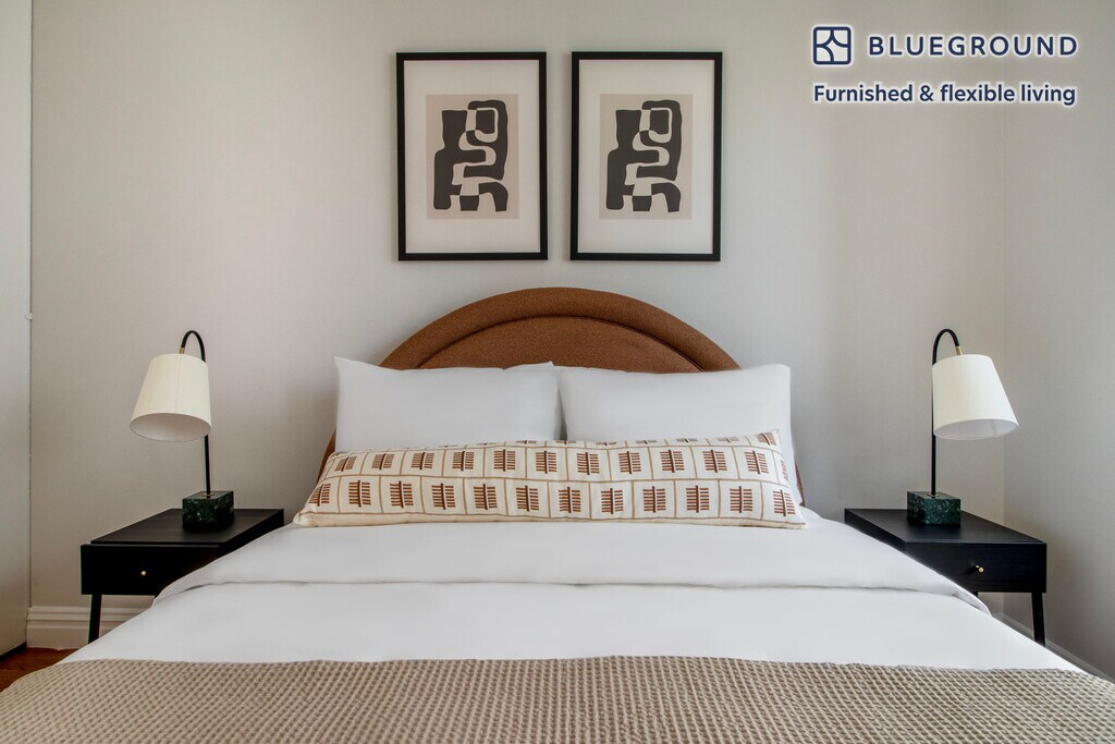 Feel at home wherever you choose to live with Blueground. You’ll love this sophisticated Theater District furnished one bedroom apartment with its modern decor, fully equipped kitchen, and lovely living room with great balcony views. Ideally located, you’re close to all the best that New York has to offer! (ID #NYC1218) The advertised rate of $3,460/month is the lowest available price, based on a 1 month(s) and 3 day(s) stay with a move-in date of December 17, 2025. If you’re looking for a 1-year stay, the rate is $5,550/month. Rates vary depending on the duration of stay, season, and other parameters. For exact pricing and additional pricing components, please visit our website and enter your desired move-in and move-out dates. The rate is applicable when billed upfront; it can be higher if billed in multiple payments. Brokers are welcome to reach out. Were you looking for an unfurnished lease? Try Blueground instead and upgrade from unfurnished to furnished living: - Furnished at rates comparable to unfurnished - No setup or furniture costs - save thousands - Move-in ready - save time, just bring your suitcase Designed with you in mind Thoughtfully designed with bespoke finishes, modern furnishings, and a fully equipped kitchen, you’ll enjoy that “I’m home” feeling with this Blueground apartment. Whether you’re lounging in your comfortable living room streaming the latest and greatest entertainment on the smart TV or premium wireless speaker, or getting some well-earned rest on the superior quality mattress with luxury linens, you’ll fall in love with everything this Theater District apartment has to offer. Sleeping arrangements Queen Bed, 63in/160cm Amenities Building amenities unique to this one bedroom apartment include an on-site: - Doorman - Dryer in building - Elevator - Washing machine in building - Lounge - Pets allowed Arrival and ongoing support The entire apartment is yours to enjoy! Throughout your stay, you’ll have access to our Client Experience team through the Blueground App. You can schedule additional cleanings, submit maintenance requests, and view our neighborhood recommendations with just a few taps. We’ll share all details upon confirmation of your stay. Other things to note Building amenities may have an extra cost. This Blueground apartment has flexible lease options, allowing you to book it for one month, a year, or more. Pets are welcome, though weight limits and breed restrictions apply and may incur fees. Brokes CYOF. We take great pride in ensuring every photo displayed is shot in our own units with our actual furnishings. That said, we regularly refresh our decor and furniture arrangement, which may differ from what’s pictured. [SI]