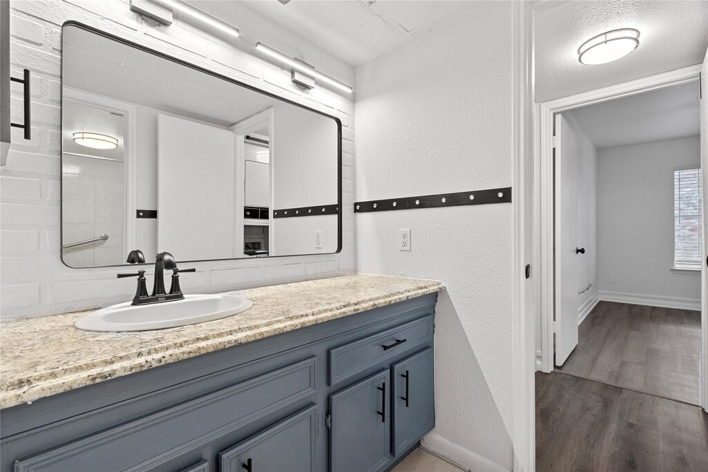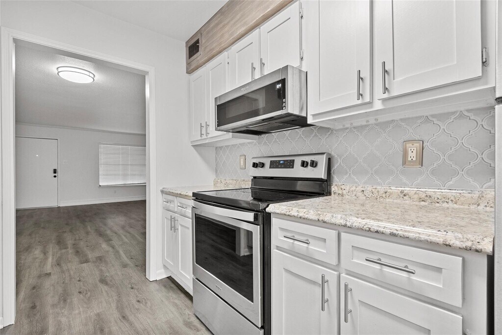 Beautifully remodeled 2-bed,1-bath condo in Woodgrove Condos with many upgrades. New wood flooring,whole-house repaint,crown molding,built-ins and a spacious great room opening to covered patio. Kitchen updated: cabinets,granite counters,tile backsplash,new sink faucet. Bath updated with new tile and cabinetry. Upgrades: all-new light fixtures (including ceilings),LED lighting,new doorknobs,upgraded keypad entry,power-washed patio,pest-control treatment,new smoke-detector batteries,new HVAC (Dec 2021) with replaced filters. Primary suite with walk-in closet and brick accent wall. Community pool and covered parking. Near I-610/Westheimer,The Galleria,Uptown Park,Tanglewood,River Oaks,Montrose,Rice Village. Zoned to Houston ISD. Call today to have a private showing for your next home! MLS# 61048553
