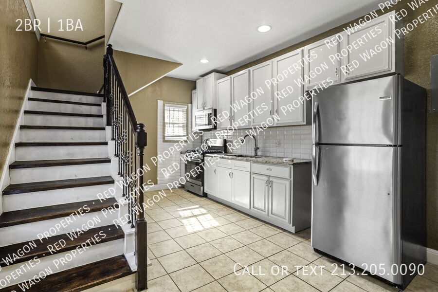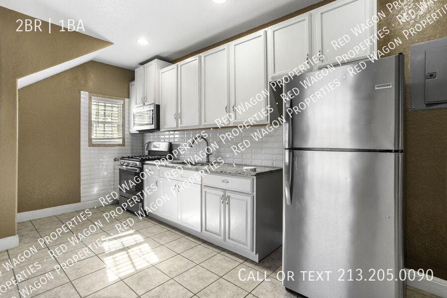 Completely remodeled 1 bedroom, 1 bathroom unit with off street parking for 2 autos. Granite counter tops and stainless stove/oven. Nice family/living area. Shares a common back yard. Fenced in front with gate leading to parking area