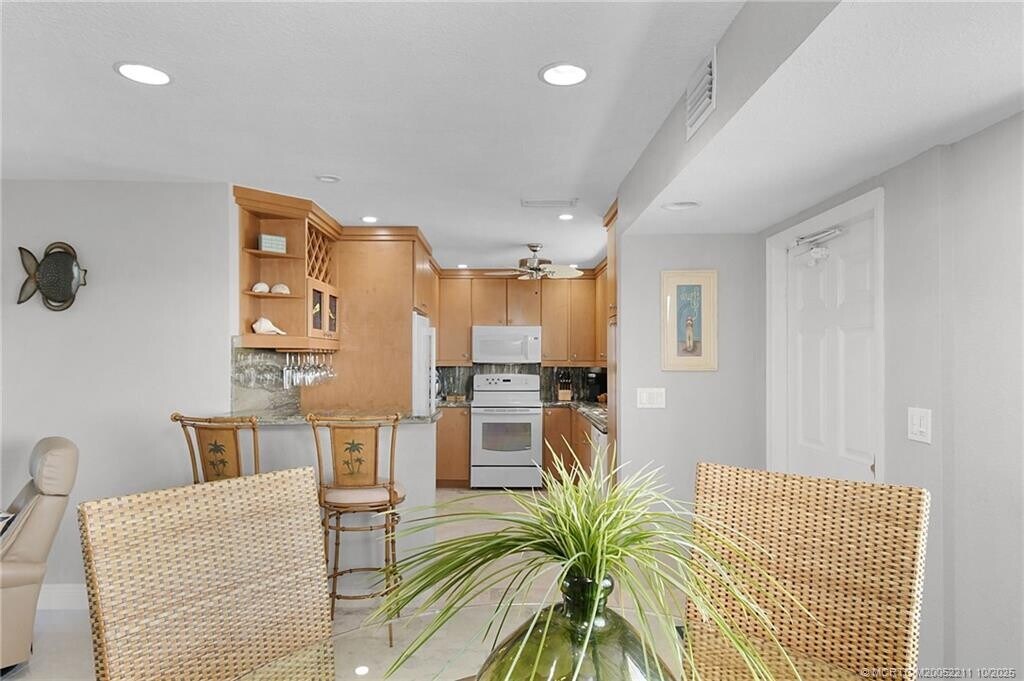 Exper?en?? bre?thtaking wat?rfr?nt v?stas,stretching fr?m the ?ndian River to the pristine shores of the Atlantic Ocean,all within steps of this exquisite condominium. The interior boasts a meticulously designed kitchen,featuring elegant granite countertops,abundant storage,and captivating river views. The master suite offers a luxurious king-size bed,a television,a spacious walk-in closet with ample shelving and hanging space,and a stylish step-in shower. Each room seamlessly transitions to a generous,covered balcony. Residents of the Ocean View Condo complex enjoy exclusive access to a private beach,two swimming pools,a tennis court,and a fishing pier on the river. Conveniently located,the complex is a short distance from the vibrant downtown areas of Stuart and Jensen Beach. Seasonal rentals require a minimum stay of 90 days,with a 30-day minimum during the off-season. MLS# M20052211