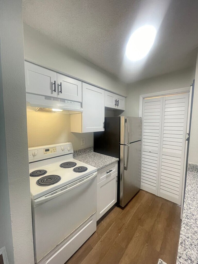 First Floor unit. 1 Bedroom / 1 Bath Condo. KITCHEN IS CURRENTLY BEING RENOVATED Laminated wood flooring and freshly painted. Unit has patio with storage closet. Community offers - Gated community, Community pool, Tennis Courts, Clubhouse and Fitness Center. Rent Includes - Washer, Dryer, Water service and weekly pest control. Available Now! Move in: application + first month + security deposit