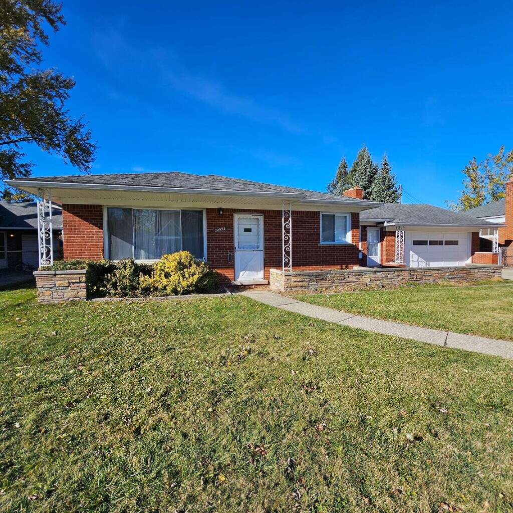3 Bedroom, 1.5 Bath Brick Ranch with Attached 2.5 Car Garage. Huge Great Room with Brick Fireplace and Vaulted Ceilings, Half Bathroom, Allows Access to Garage and Good-Sized Laundry Room. Head Thru the Open Kitchen with Eat-In Dining Room, Lots of Cabinets That Have Lights Underneath and Plenty of Counter Space, All Appliances. Continue On into Bonus Living Room That Leads to 3 Bedrooms and A Main Bath with Jacuzzi Tub. Overall This House Has Plenty of Space. Large Backyard with Raised Deck and Sheds. Application Required. Schedule a Showing at