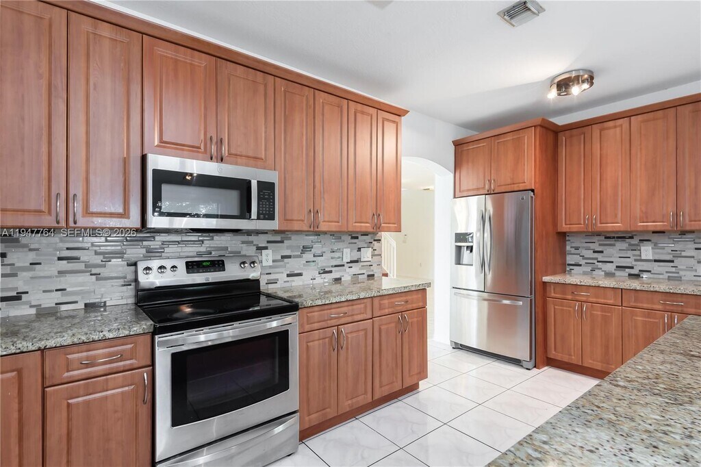Live spaciously in this beautiful 4-bedroom + den home. The layout includes a full bedroom and private bath on the first floor, ideal for in-laws, guests, or grown children. The fully upgraded kitchen is ready to inspire your inner chef, while the oversized master suite features a generous walk-in closet that feels like its own room. Located near top-rated schools, highways, and major shopping centers for maximum convenience. ****Many more units available for rent in the surrounding area**** Serious inquiries only!!! Beachfront Realty ****No texts. ***** Courtesy of La Rosa Realty LLC