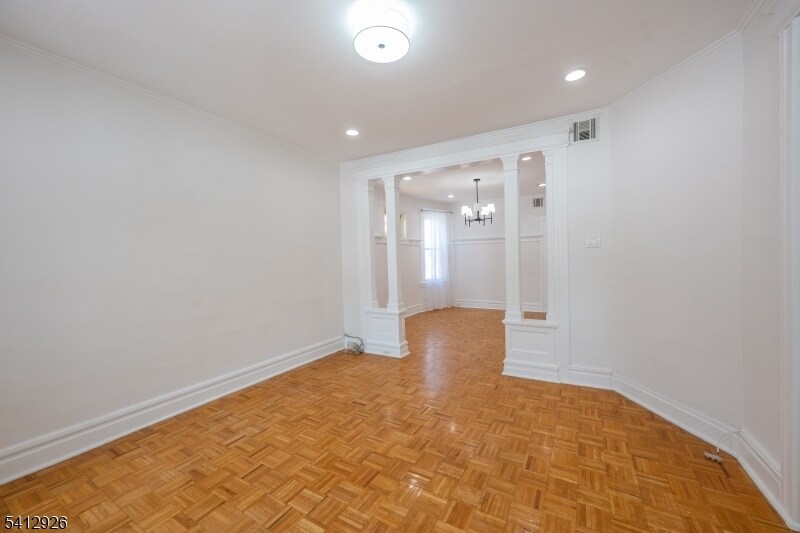 Fantastic first floor 2 bedroom unit right across from Watsessing Park in lovely Bloomfield. Formal living and dining rooms with original parquet floor, great updated eat-in kitchen with custom cabinets, SS appliances, high ceilings. With central air, recessed lighting, ceiling fans, and stained-glass accent, this apartment is bathing in natural light. Full bath with tub/shower combination, closets and back entrance. Location in close proximity to train/NYC commute and restaurants/shops, downtown Bloomfield. Shared laundry facility in the basement.