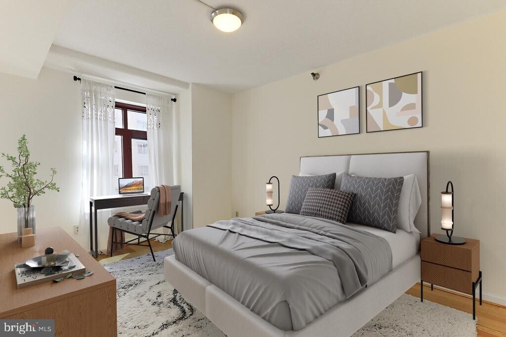 Welcome to #406 at The Charleston — a great find in the heart of Clarendon-Courthouse! This condo offers over 885 sq ft of updated living space, featuring 2 spacious bedrooms with their own en suite baths, modern floors, and an enclosed balcony with window coverings and a ceiling fan, adding additional all-season living space. This home also includes a dedicated storage bin, in-unit laundry, stainless steel appliances and quartz counters. Don't overlook the rare TWO side-by-side assigned garage parking spots! Centrally located, this secure, concierge-managed building, offers the walkable lifestyle: just steps to Whole Foods, Trader Joe’s, Clarendon & Courthouse Metro stations, restaurants, gyms, and Rocky Run Park. Building amenities include a 24-hour secure entry, outdoor pool, modern fitness center, party room, and secure garage parking. ALL UTILITIES INCLUDED except cable and internet. Enjoy unbeatable value, convenience, and community right in the heart of Arlington! All Allegiance Property Management residents are enrolled in the mandatory Resident Benefits Package (RBP) for $55.95/month which includes liability insurance, credit building to help boost the resident’s credit score with timely rent payments, up to $1M Identity Theft Protection, HVAC air filter delivery (for applicable properties), utility concierge service making utility connection and home service setup a breeze during your move-in, resident rewards program, on-demand pest control (optional), and much more! If resident chooses not to have on-demand pest control, the RBP cost will be $40.95. More details upon application.