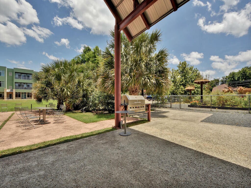 Live the Kicked Back Austin Lifestyle Trendy Ground Floor Corner Unit Popular East Side Location Minutes to Downtown & All it has to Offer All-in-One Plan Gleaming Stained Concert Floors Recent Interior Paint Ceiling Fans Designer Lighting Immaculate Kitchen:Breakfast Bar/Butcher Block Counters/White Cabinetry Subway Tile Backsplash/Built-In Microwave Recent Stainless Gas Range Full Bath has Step-In Shower Huge Walk-In Closet Indoor Utility Area Complex has Courtyard Garden Covered Patio w/Outdoor Grills Gated Parking Spot.