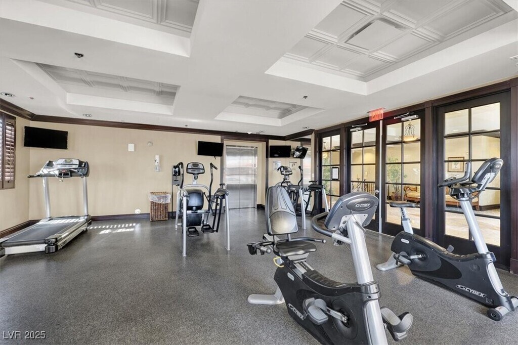 Welcome to this two-bedroom condo located in a resort-style community in the vibrant south of Las Vegas. This home boasts 2.5 bathrooms, dual master suites, and walk-in closets, providing ample space and comfort. The kitchen is equipped with stainless steel appliances and granite countertops, adding a touch of elegance. The wood like shutter blinds add a warm, inviting touch to the space. The community offers a pool, theater, gym, and sauna, providing a variety of recreational options. The guard-gated entrance, key card smart access to the unit, and concierge service offer convenience. The location is unbeatable, with easy access to the I15 Freeway, South Point Casino, and a variety of shopping and dining options. The property also includes a parking garage with double parking space and valet service, as well as elevators for easy access to your home. Experience the vibrant lifestyle of Las Vegas in this well-appointed condo.