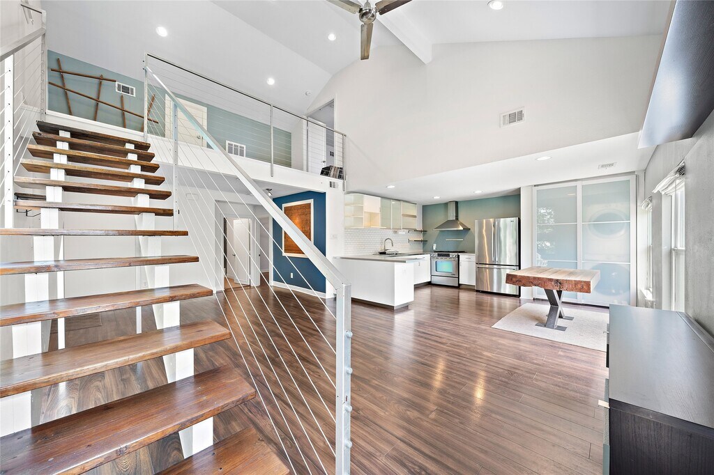 Open floor plan with plenty of natural lighting throughout! This home features 3 bedrooms and 2 full baths with tasteful upgrades and obvious attention to detail,including soaring vaulted ceilings and a custom floating staircase. The sleek kitchen includes stainless steel appliances,while the washer,dryer,and fridge are all provided for your convenience. The property includes gated parking for two vehicles and is located just a few blocks from Downtown,Midtown,and everything EaDo has to offer. You are within walking distance of the best restaurants and bars in Houston,with convenient access to all major freeways,the Medical Center,and the Museum District. MLS# 13981342