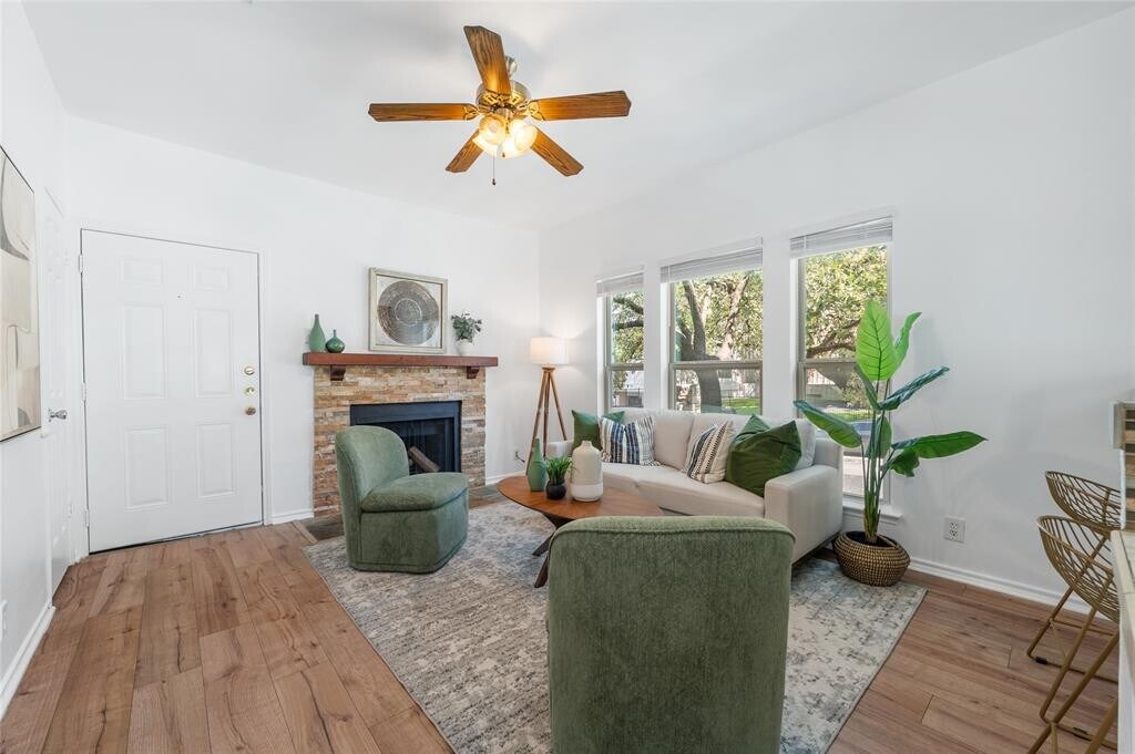 Owner prefers lease end 7/31/26 but this is negotiable. Thoughtfully updated and freshly painted 2 bedroom, 1 bath UT area condo located in the heart of Central Austin/West Campus. Just blocks from Pease Park, Shoal Creek Trail, and the University of Texas, this ground floor unit offers the perfect blend of convenience, comfort, and style. The cozy living room with a fireplace and wood-look laminate flooring plus abundant natural light leads into the adjacent kitchen. Stone countertops and ample cabinet space plus a breakfast bar are perfect for cooking and dining. The bathroom has been stylishly remodeled with modern finishes, including a glass-tiled shower. This unit includes two spacious bedrooms, a stacked washer and dryer, and refrigerator for move in convenience. Outside, enjoy a shaded community courtyard just steps from your front door perfect for relaxing or entertaining. Two dedicated off-street parking spaces are included. Located in the desirable Winchester Condo community, this home offers easy access to downtown, public transportation, and all the dining, shopping, and culture that makes Austin unique! Close to The Drag, UT Campus, the UT Shuttle and lots of dining and more! Quick access to Mopac and minutes to downtown! Perfect for students, or someone who wants to be close to it all whilst living in a peaceful community.