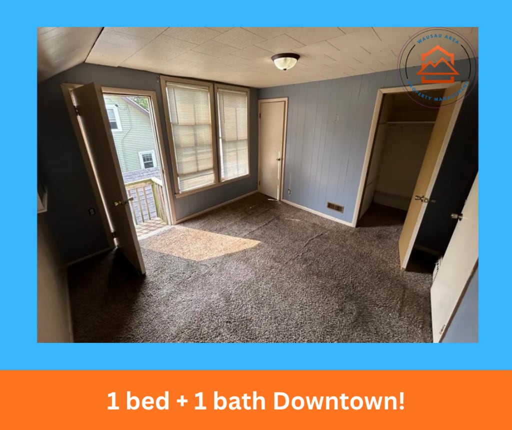 This cozy 1 bedroom, 1 bathroom upper level apartment is available for rent! Off-street parking. Carpeting throughout. Lots of windows for natural light. Deck included. Cats allowed for an additional fee. Trash, water, & sewer are all included, tenant pays the rest. Apply now!!- Wausau Area Property Management.