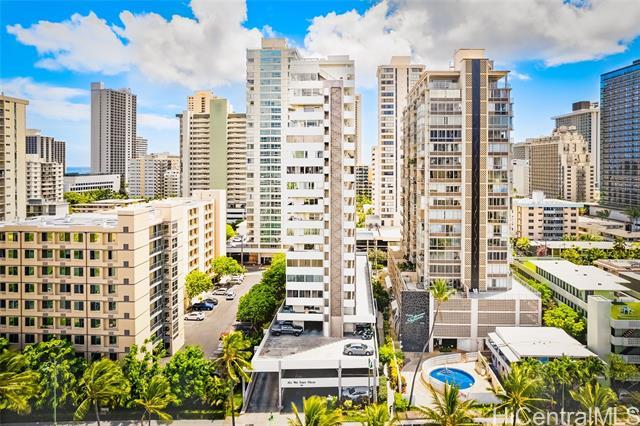 Well-maintained, updated 2-bedroom, 2-bath higher floor unit at the popular Ala Wai Townhouse includes one covered parking stall. New luxury vinyl floors installed in Sept. of 2025, new faucets and toilets installed in Sept. of 2025 too. Secured building with swimming pool in a convenient location in famous Waikiki. Unique design allows for two entrances to your unit and the comfortable open lanai gives you a nice space to relax with fresh air. Please contact our showing coordinator by text at to schedule a visit. $35 application fee per adult occupant, must provide proof of employment and bank statements showing adequate reserves and earnings. No pets, no smoking in the unit allowed. Rent includes: water, sewer, hot water, internet and cable TV (1 box) with Hawaiian Telcom.