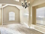This stunning home, featuring new granite countertops, tall ceilings, and elegant arched entryways. The home boasts brand-new vinyl plank flooring throughout and remodeled bathrooms with modern finishes. Enjoy an open layout with a wall of windows in the family room, filling the space with natural light. The kitchen offers a stylish tile backsplash and opens to the living area, which is pre-wired for surround sound perfect for entertaining. A study area sits conveniently next to the utility room. The master room is a true retreat with French doors, dual vanities, and a huge walk-in closet. Step outside to a large backyard, ideal for relaxing or gatherings.
