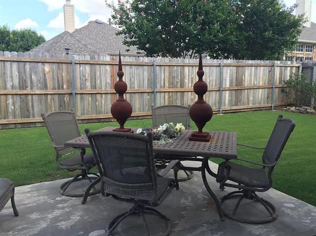 Frisco ISD This stunning home, featuring new granite countertops, tall ceilings, and elegant arched entryways. The home boasts brand-new vinyl plank flooring throughout and remodeled bathrooms with modern finishes. Enjoy an open layout with a wall of windows in the family room, filling the space with natural light. The kitchen offers a stylish tile backsplash and opens to the living area, which is pre-wired for surround sound perfect for entertaining. A study area sits conveniently next to the utility room. The master room is a true retreat with French doors, dual vanities, and a huge walk-in closet. Step outside to a large backyard, ideal for relaxing or gatherings.