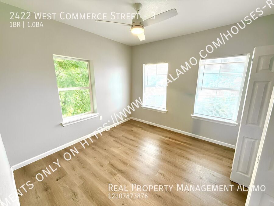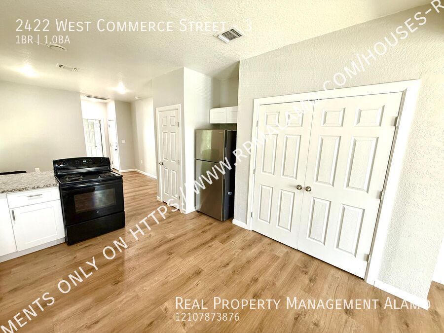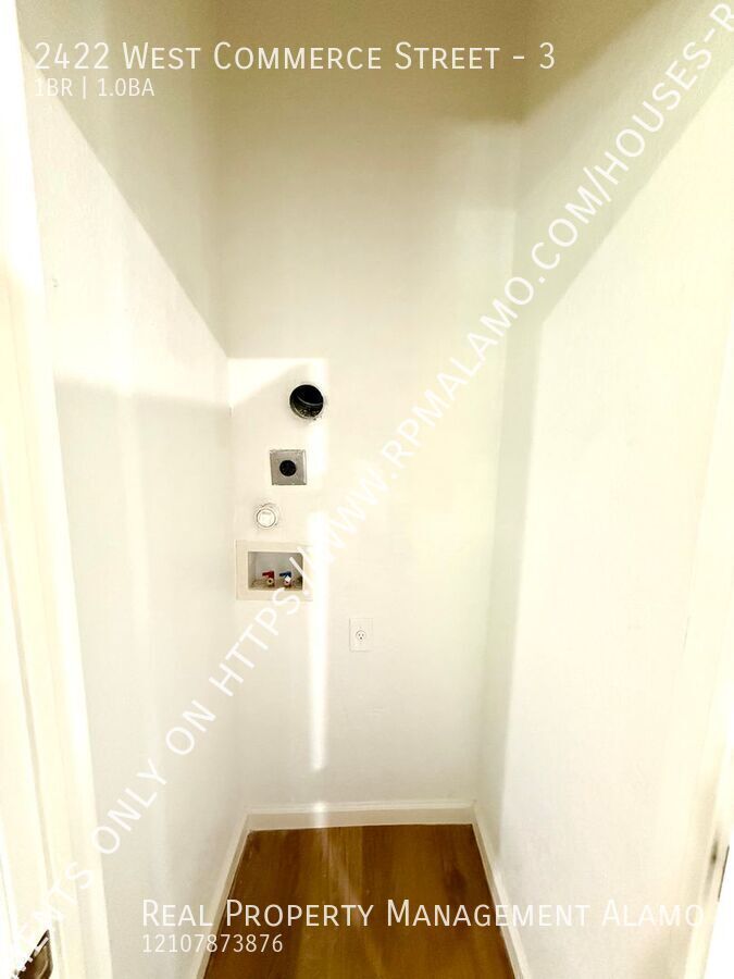 2422 West Commerce Street Unit 3 is a one-bedroom, one-bathroom upstairs unit located in a fourplex near downtown San Antonio. This unit offers central air and heat along with ceiling fans to support a comfortable indoor environment throughout the seasons. The kitchen includes a refrigerator and a stove with oven, providing essential appliances for daily cooking. Stackable washer and dryer connections are available inside the unit for added convenience. Situated just minutes from downtown, the location offers easy access to shopping, dining, and major city attractions, making it a functional choice for those looking to live near San Antonio’s urban center. For more information, email us at . We look forward to hearing from you! Schedule a showing TODAY!!!: Apply here: RPM Alamo is proud to offer deposit-free living to qualified renters through Obligo! We understand that moving costs can add up, so we want to extend financial flexibility to our residents. When you move in with us, you can skip paying a security deposit and keep the cash for activities you care about. Learn more about the benefits of deposit-free living with Obligo’s brochure or on their website. All Real Property Management Alamo residents are enrolled in the Resident Benefits Package of $35 monthly which includes credit building to help boost your credit score with timely rent payments, $1M Identity Protection, utility concierge service making utility connection a breeze during your move-in, our best-in-class resident rewards program, and much more! More details upon application. ***The information contained in this advertisement is subject to change. The terms of any lease, should you execute a lease with RPM, are found solely in the Lease Agreement itself, along with any applicable addenda. Situations that may affect change include, but are not limited to an applicant's credit rating which may affect the required security deposit amount, and new information provided to us regarding a unit that we did not know at the time we placed this advertisement.*** $350 Pet Fee Non Refundable $50 Pet Rent 1 Bathroom 1 Bedroom Central Air/Heat Fourplex Near Downtown Shopping Nearby Stackable Washer/Dryer Connections Upstairs Unit