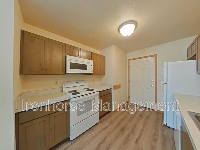 NEW LUXURY VINYL FLOORING! Townhouse-style END unit! 3 Bedrooms, 1.5 Bathrooms, single car attached garage. Washer/dryer hookups, private patio, gas-forced air heat. Gorgeous back patio for those incredible summer nights! No pets. No smoking. For a virtual tour: Water, sewer, and lawn maintenance included Tenants pay trash, gas and electric Rent: 1,800* Deposit: 1,900 *(Rent is based on one occupant per bedrooms in the unit.) *($30/month Resident Benefit Package in addition to rent.) Application: $27 per adult applicant Available: NOW Showings: CALL to schedule a viewing or visit us at Lease Terms: Tenant would get to choose when lease would end in either May, June or July of 2026 or as otherwise agreed No pets (dogs, cats, ferrets, chickens) No smoking/vaping of anything within 25 feet of the building Proof of renters insurance required upon lease signing Credit, Criminal & Rental History: Ironhorse Management runs a credit check, criminal background check and verifies rental references on all occupants over the age of 18. Applicants should have good credit and good rental history. If an applicant has insufficient credit or rental history then a cosigner may be required. Applicants with bad credit or bad rental history will be denied (no cosigner accepted). Amenities: Garage, WD Hookups, Patio