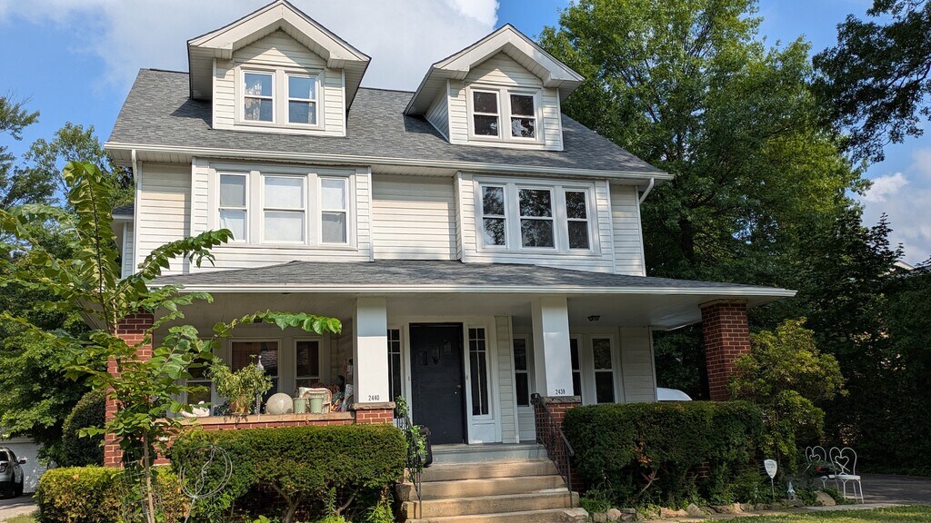 Welcome to - 2438 Woodmere Drive/at North Park Blvd. Cleveland Heights, OH 44106 Newly Renovated 5 bdrm/2.5 bath, with an inviting front porch, is perfectly situated on quiet side street just minutes to University Circle, UH/Cleveland Clinic hospitals and CWRU. Also, easy access to Cedar-Fairmount shopping area, Shaker Lakes parks and trails, RTA University and Shaker Square train stops. This 5-bedroom unit is a beautiful combination of original architectural details, including hardwood floors, mixed in with modern updates such as a remodeled kitchen with quartz counters, stainless steel appliances, and ceramic tile floor. Basement offers plenty of storage, as well as private washer and dryer. Most of the windows have been replaced. This is a smoke and vape-free property. Enjoy the perfect blend of green space, city access, and amenities in a quiet, tree-lined Cleveland Heights neighborhood. Key Features: 5 Bedrooms / 2.5 Bathrooms. All new kitchen appliances and countertops. Forced air heat with central AC. 3 floor layout and basement with personal washer and dryer. 1 car garage with garage door opener, also off-street parking for four other cars. Inviting front porch and a shared deep backyard. Roxboro Elementary and Middle Schools are a block away. Enjoy a beautiful and comfortable home in a great location!