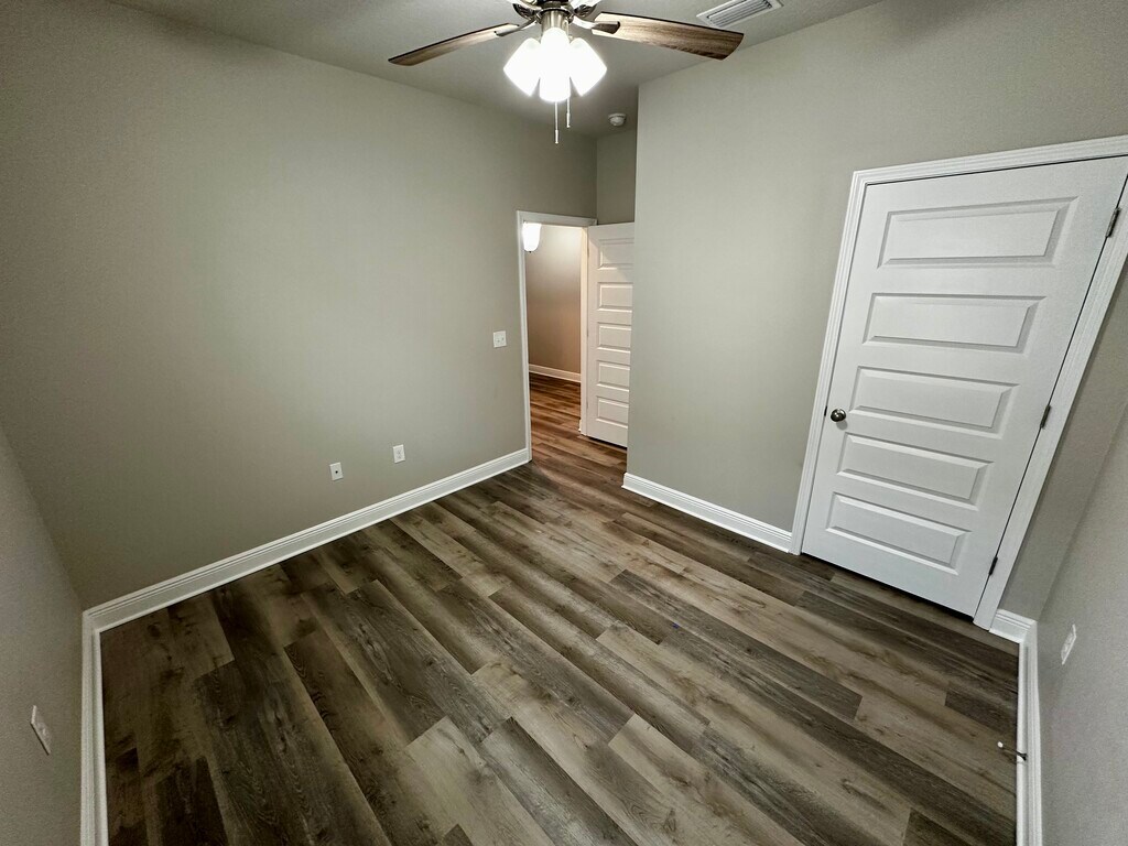 LIKE NEW - 4 bed / 2 bath with Fenced Yard in Jubilee Farms Subdivision in Daphne: Fresh New Paint & Flooring (NO CARPET) (*Flooring is much lighter in person*) - This home features 9 ft tall ceilings and 2-inch blinds throughout, trey ceilings in master and family rooms. Kitchen boasts all stainless-steel appliances, walk-in pantry, large center island with bar seating, garbage disposal. Granite countertops throughout kitchen and bathrooms. Master bedroom includes large walk-in closet and on-suite bathroom with double sinks and large shower with separate soaking tub. Three additional spacious bedrooms with large closets! Attached 2-car garage and covered front and back patio with outdoor TV hook-up! This community is full of amazing amenities including a resort-style zero-entry pool with 20' water slide, splash pad, adult pool, community clubhouse with gym, yoga room, catering kitchen, card rooms, social multi-use area, and tot room, walking - nature trails, fire pit and grilling area, scenic lakes / fishing, playground, event lawn & food trucks. 6 miles to I-10 - 28 miles to the BEACH. Close to shopping, restaurants, and schools. Owner pays for HOA fee. Tenant pays all utility costs. Animals allowed with fee and approval.