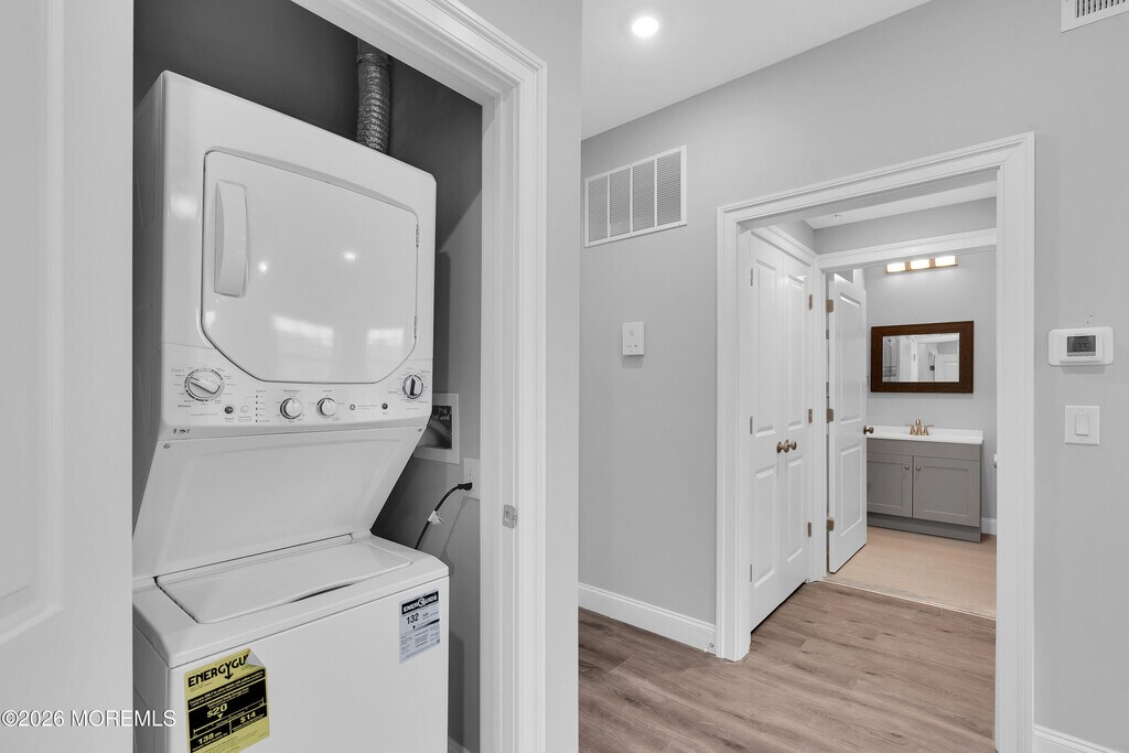 Welcome to your luxury apartment in Manasquan. This 2 floor unit offers an open floorplan with the large kitchen,living room,full bathroom and laundry on the first level,and two oversized bedrooms and full bathroom on the second level. Kitchen has ample cabinet space and stainless steel appliances. The building offers an elevator and intercom system. Outside there is a patio space with bike storage and 1 reserved parking space. All located steps to down town Sea Girt,and Manasquan. just blocks to the beach.