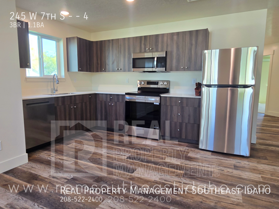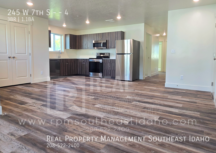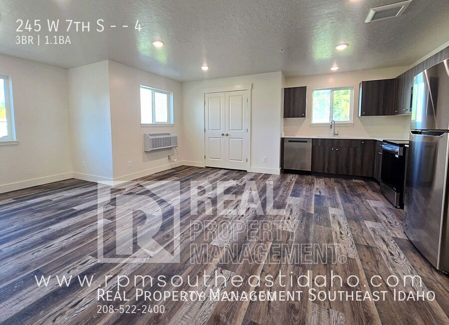 Upper Unit - Very modern, nice & bright 3 bedroom, 1.5 bathroom apartment for rent on 7th S in Saint Anthony. The open floor plan has an open living area, a very nice kitchen with lots of cabinets and granite countertops, and a dining area. High end smart oven, refrigerator and dishwasher. Close to shopping and the highway. Appliances are provided (fridge, microwave, stove, dishwasher, with washer and dryer hookups). MONTHLY FEES DUE TO RPM: Rent: $995.00 Water/Sewer/Garbage: $80.00 Tenant Benefit's Package: $30.00 Pet Fee (if applicable): $75.00 ONE TIME FEES DUE AT LEASE SIGNING: Turnover Fee: $1000.00 Lease Admin Fee: $200.00 Pet Deposit (if applicable): $500.00 UTILITIES (Tenant's Responsibility) Electric: Rocky Mountain Power Gas: N/A Other: Internet (Tenant's Responsibility) Any other utilities not listed above are tenant's responsibility. PETS: Limit of 2 pets per unit, dogs 30 lbs & under only SMOKING: No. Apartment is not furnished. All applicants over 18 years of age are subject to a background check, including criminal, credit, employment verification, and past tenancy. We are an Equal Housing Opportunity Management Company. The pictures/videos may not be of the exact unit, however, the layout, colors, etc. are the same. ** The information contained in this advertisement is subject to change. The terms of any lease, should you execute a lease with RPM, are found solely in the Lease Agreement itself, along with any applicable addenda. Situations that may affect change include, but are not limited to, an applicant's credit rating which may affect the required turn-over fee amount, and new information provided to us regarding a unit that we did not know at the time we placed this ad. ** A/C Large Shared Yard Lvp Flooring Monitored Alarm Systerm None