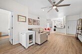 Embrace modern living in this beautiful home located in the sought-after Chamonix CondominiumsHome Highlights:-Bright, open-concept living area. The spacious living room with sliding doors leads to a covered patio-New laminate flooring in living areas and bedrooms; tile flooring in kitchen and baths-Efficiently-designed kitchen with quartz countertops, modern tile backsplash, and ample cabinetry-Dedicated laundry space with overhead storage-Primary suite set at the back of the home for enhanced privacy and easy patio access-En-suite bathroom with dual vanities, built-in shelving, built-in bluetooth speaker, blue light nightlight, and a spa-style walk-in shower with dual shower heads-Water and trash covered by the ownerLocation Highlights:-Located in the East Riverside Corridor and Just minutes from Downtown Austin, Lady Bird Lake, and Zilker Park-Quick access to IH-35, Highway 71, and 183 for easy commuting-Ample parking for tenant and guests Embrace modern living ...