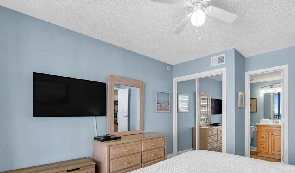 Seaside Beach and Racquet Club 2207 is a beautiful and spacious condominium located in Gulf Shores, Alabama. This fully furnished condo offers two bedrooms and two bathrooms, making it the perfect retreat for a family or a group of friends. The interior of the condo features modern furnishings and decorations, creating a welcoming and cozy atmosphere. The living room is equipped with a comfortable sofa and chairs and a flat-screen TV, making it a great place to gather. The kitchen is fully equipped with modern appliances, including a refrigerator, oven, microwave, and dishwasher, making it easy to prepare meals during your stay. There is also a private walk-out balcony that offers partial views of the Gulf of Mexico, making it the perfect spot to enjoy your morning coffee or watch the sunset in the evening. Additionally, the complex offers a range of amenities, including an outdoor pool, indoor pool, tennis courts, a fitness center, and easy access to the beach. The condo's interior boasts modern furnishings and decorations, creating a welcoming and cozy atmosphere. The living room is equipped with a comfortable sofa and chairs and a flat-screen TV, making it a great place to gather. The kitchen is fully equipped with modern appliances, including a refrigerator, oven, microwave, and dishwasher, making it easy to prepare meals during your stay. Parking passes are purchased at the guard shack on arrival. The cost is $50 per pass with a maximum of 2 passes per reservation, and payment is by card only. Located in Gulf Shores, Alabama, this condo offers easy access to a variety of local attractions. You are just minutes away from top restaurants, great beach shopping, and exciting activities like deep-sea fishing and watersports. Families will appreciate the kid-friendly attractions nearby, such as arcades, miniature golf, and amusement parks. A short drive will take you to Pensacola, where you can explore museums like the Pensacola Naval Museum and other sightseeing adventures. For March 1st to May 1st, the minimum age requirement for check-in is 25 years old. No pets are allowed, and any violation of this policy will incur a $200 fine. The home has a maximum occupancy limit, and renters who exceed this limit are subject to eviction. No smoking is allowed in the unit or on the balcony, and any violation of the smoking policy will incur a $250 fine plus cleaning costs necessary to remove smoke odors. Quiet hours are observed from 10 pm to 8 am, and violators will be charged a $200 fine. The condominium association has a strict "No Pets" policy, which applies to emotional support animals. Only ADA-compliant service dogs are allowed according to Federal Law. No parties or events are allowed, and violators will be charged a $500 fine. A State Identification Card or Driver License copy will be requested upon booking, and the traveler must be at least 22 years of age to make a reservation. [SI]