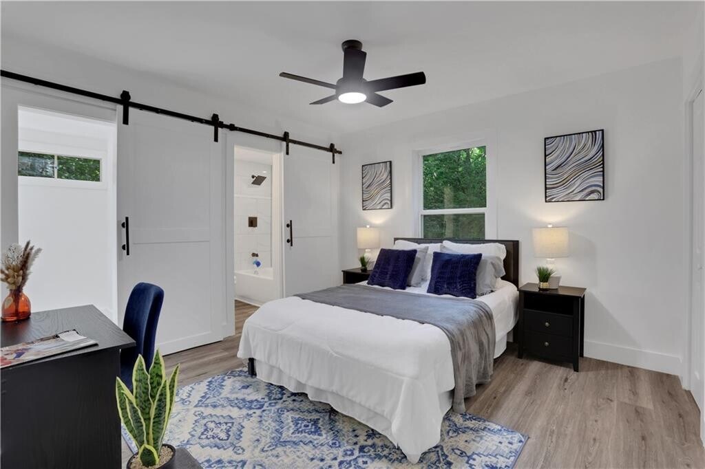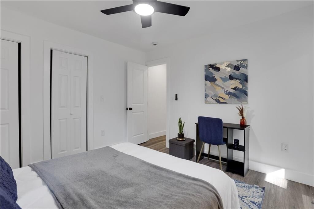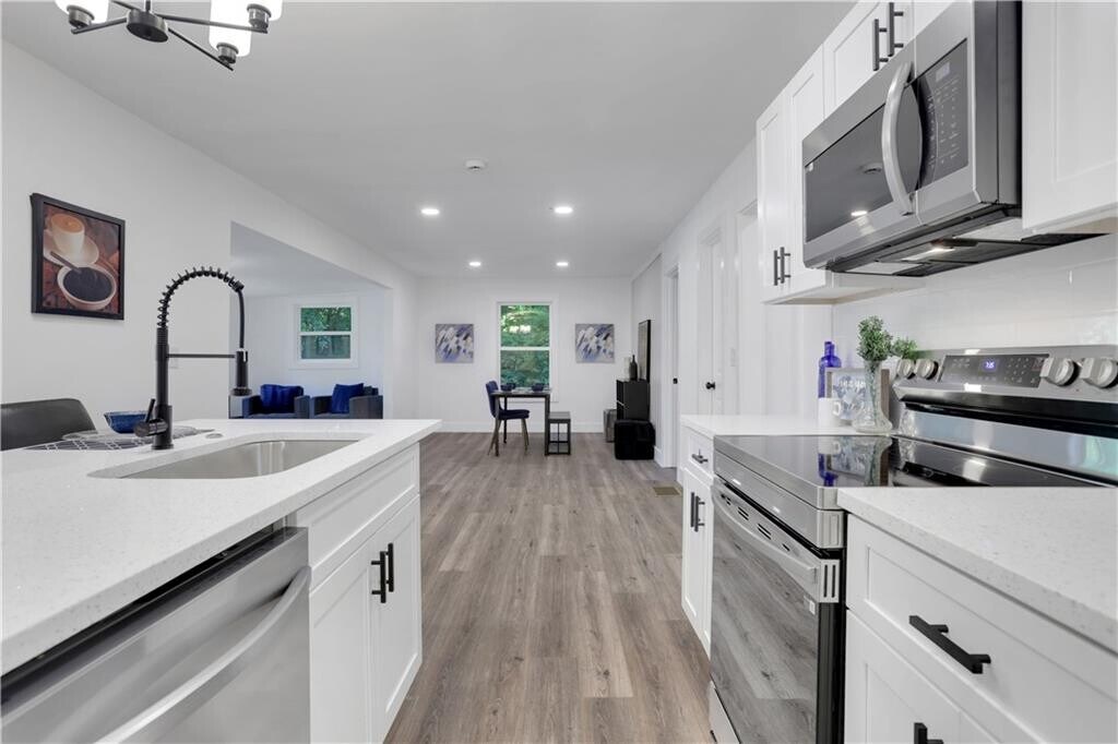 Discover this fully renovated ranch-style gem. Step inside to an open-concept design with brand-new flooring,fresh paint,and abundant natural light. The modern kitchen shines with sleek granite countertops,white cabinetry,and stainless steel appliances,while both bathrooms have been completely updated for a fresh,contemporary look. Every detail has been thoughtfully redone—new roof,plumbing,electrical,windows,and front porch—making this a true turnkey home,just minutes from Hartsfield-Jackson Atlanta International Airport,Lakewood Amphitheatre,and the Atlanta BeltLine.