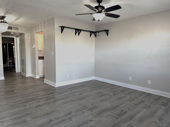 Fully updated 1-bedroom, 1-bath villa located in desirable Hill Crest Villas. This unit has the enclosed porch that is air conditioned providing about 700 square feet of living space! This unit features an open-concept living and dining area, enhanced by ceiling fans and overhead lighting throughout. The home offers newer appliances and modern light fixtures, creating a bright and welcoming atmosphere. Unique to this unit is a spacious, private screened-in patio, providing additional living space ideal for relaxing or entertaining. The unit includes a covered carport conveniently located just outside the front door. The community amenities include a pool, sauna, clubhouse, and on-site laundry facilities. Enjoy a highly walkable location with easy access to restaurants, entertainment, Countryside Mall, grocery stores, and yoga studios. Available first week of March. This property allows self guided viewing without an appointment. Contact for details.