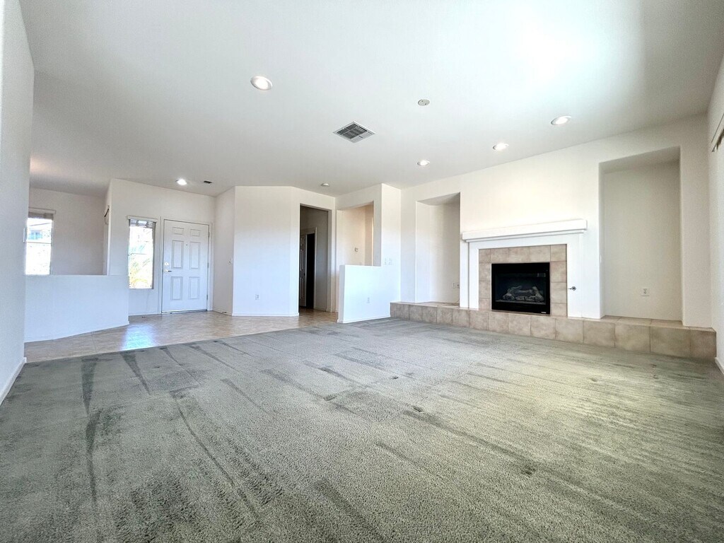 Beautiful single-story home with stunning views of the South Valley, surrounding mountains, and the 12th hole of the golf course! Located in a desirable 55+ community, this home features a covered front entry and low-maintenance desert landscaping. The open and bright floor plan includes charming pony walls that define the living spaces. The kitchen offers Corian countertops, an island for barstools, and a built-in desk in the eat-in casual dining space that overlooks the fantastic back yard. Enjoy a raised-hearth fireplace in the living room and a separate formal dining area—perfect for entertaining. The primary bedroom includes a lovely bay window, and the laundry room is equipped with a sink and storage cabinets. The 2-car garage also offers additional space for a golf cart. 1-2 small pets under 25 lbs at maturity considered with additional deposits.