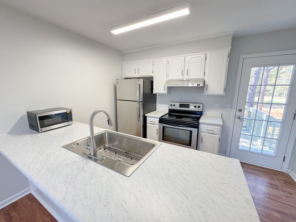 Recently renovated and ready for move in! This 2 bed / 1.5 bath townhome unit with fresh paint, flooring and stainless steel appliances has an open kitchen / living area with space for a dining table, and both bedrooms are upstairs and share a full bathroom. This unit is located on the corner of Highpoint Road and Country Club Road, close by to Forrest Heights Country Club and not far from all major shopping and dining locations!