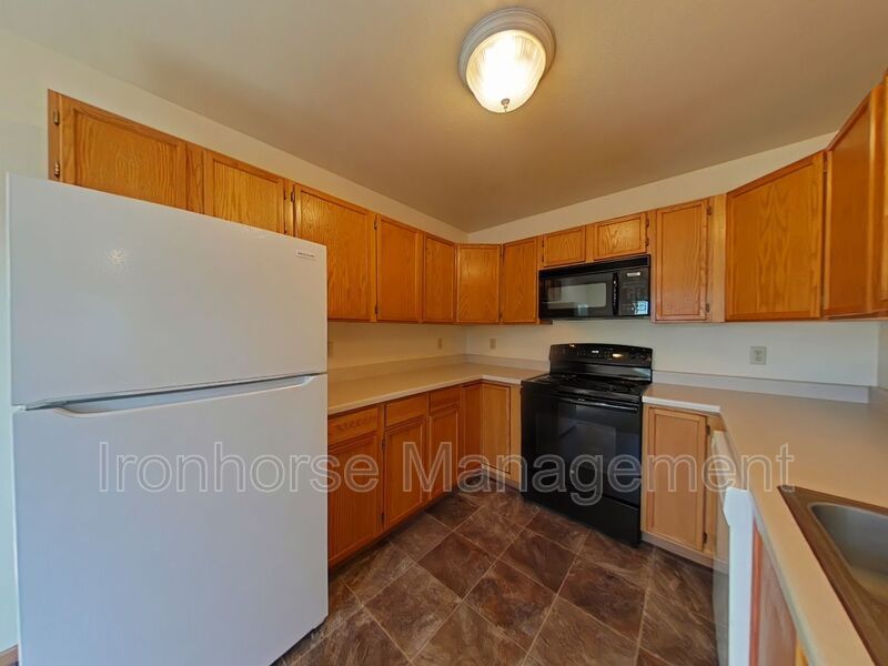 Fabulous 2nd-floor unit with great open floor plan! 3 Bedrooms plus an office, 1 bathroom, 1 detached garage, and washer/dryer hookups! Unit has gas-forced air heat. No pets. No smoking. For a virtual tour: Water, sewer, and lawn maintenance included Tenants pay trash, gas and electric Rent: 1,800* Deposit: 1,900 *(Rent is based on one occupant per bedrooms in the unit.) *($30/month Resident Benefit Package in addition to rent.) Application: $27 per adult applicant Available: NOW Lease Terms: Tenant would get to choose when lease would end in either May, June or July of 2026 or as otherwise agreed Showings: CALL to schedule a viewing or visit us at No pets (dogs, cats, ferrets, chickens) No smoking/vaping of anything within 25 feet of the building Proof of renters insurance required upon lease signing Credit, Criminal & Rental History: Ironhorse Management runs a credit check, criminal background check and verifies rental references on all occupants over the age of 18. Applicants should have good credit and good rental history. If an applicant has insufficient credit or rental history then a cosigner may be required. Applicants with bad credit or bad rental history will be denied (no cosigner accepted). Amenities: Garage, WD Hookups