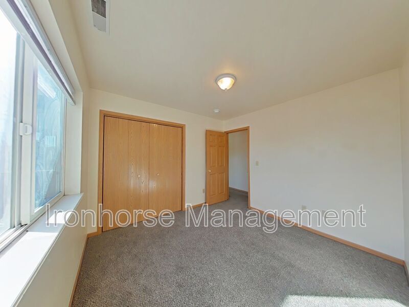 Fabulous 2nd-floor unit with great open floor plan! 3 Bedrooms plus an office, 1 bathroom, 1 detached garage, and washer/dryer hookups! Unit has gas-forced air heat. No pets. No smoking. For a virtual tour: Water, sewer, and lawn maintenance included Tenants pay trash, gas and electric Rent: 1,800* Deposit: 1,900 *(Rent is based on one occupant per bedrooms in the unit.) *($30/month Resident Benefit Package in addition to rent.) Application: $27 per adult applicant Available: NOW Lease Terms: Tenant would get to choose when lease would end in either May, June or July of 2026 or as otherwise agreed Showings: CALL to schedule a viewing or visit us at No pets (dogs, cats, ferrets, chickens) No smoking/vaping of anything within 25 feet of the building Proof of renters insurance required upon lease signing Credit, Criminal & Rental History: Ironhorse Management runs a credit check, criminal background check and verifies rental references on all occupants over the age of 18. Applicants should have good credit and good rental history. If an applicant has insufficient credit or rental history then a cosigner may be required. Applicants with bad credit or bad rental history will be denied (no cosigner accepted).