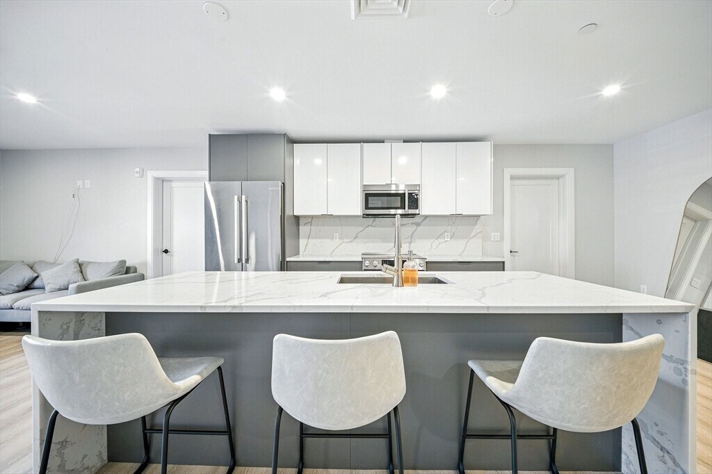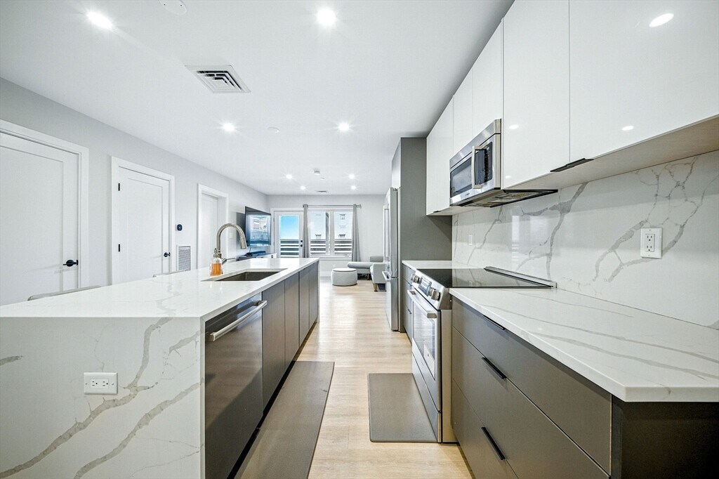 AVAIL NOW! Welcome to this 2021 built Reginald Condominiums at Chelsea Square! This luxury 2 beds/2 baths corner unit has a spacious open style layout and stylish finishes with a huge private balcony and TWO parking spots included. The modern kitchen has a sleek design and soft-close high gloss cabinetry,Calcutta Laza Quartz countertops,full slab backsplash,and Bosch appliances. Both bedrooms have walk-in closets and en-suite bathrooms! The bathrooms feature a floating vanity with off-white Riso color,Calcutta Laza Quartz countertop and backsplash and beautifully appointed showers. Minutes to downtown Boston,waterfront amenities,green space,diverse dining,coffee shops,theater,Assembly Row,Encore,Winthrop Golf Course,and much more. Easy access to Rt 1,Bus Stops and the new Silver Line. Super short commute to Boston and the airport. Water and Sewage included. MLS# 73427725