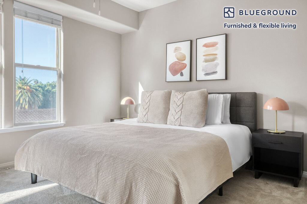 Show up and start living from day one in Pasadena with this cozy one bedroom Blueground apartment. You’ll love coming home to this thoughtfully furnished, beautifully designed, and fully equipped Playhouse Village home. (ID #LAX857) The advertised rate of $3,960/month is the lowest available price, based on a 12 month(s) stay with a move-in date of March 16, 2026. Rates vary depending on the duration of stay, season, and other parameters. For exact pricing and additional pricing components, please visit our website and enter your desired move-in and move-out dates. The rate is applicable when billed upfront; it can be higher if billed in multiple payments. Brokers are welcome to reach out. Were you looking for an unfurnished lease? Try Blueground instead and upgrade from unfurnished to furnished living: - Furnished at rates comparable to unfurnished - No setup or furniture costs - save thousands - Move-in ready - save time, just bring your suitcase Designed with you in mind As with any Blueground apartment, you’ll find a thoughtfully designed space complete with beautiful furniture and a fully equipped kitchen in this one bedroom property. And, thanks to our superior quality mattresses, luxury linens, and towels, you can relax knowing you’ll always feel comfortably at home. When you’re ready for some fun, you can take in the Pasadena vibes or bring the entertainment to you with the premium wireless speaker or smart TV. This apartment also offers in-apartment laundry. Sleeping arrangements King Bed, 70.8in/180cm Amenities Building amenities unique to this one bedroom apartment include an on-site: - BBQ Area - Dryer - Elevator - Swimming pool - Washing machine - Lounge - Parking - Pets allowed Arrival and ongoing support The entire apartment is yours to enjoy! Throughout your stay, you’ll have access to our Client Experience team through the Blueground App. You can schedule additional cleanings, submit maintenance requests, and view our neighborhood recommendations with just a few taps. We’ll share all details upon confirmation of your stay. Other things to note Building amenities may have an extra cost. This Blueground apartment has flexible lease options, allowing you to book it for one month, a year, or more. Pets are welcome, though weight limits and breed restrictions apply and may incur fees. Parking is offered based on availability and is subject to a fee. We take great pride in ensuring every photo displayed is shot in our own units with our actual furnishings. That said, we regularly refresh our decor and furniture arrangement, which may differ from what’s pictured. Also note - This apartment does not have strong cell phone reception [SI]