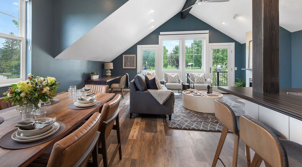 Experience the charm of the Teton Valley with this mountain modern townhome, built in 2020 and located just minutes on foot from downtown Victor. This home offers modern amenities while embracing the spirit of the valley, making it perfect for a weekend getaway to ski at any of the three nearby resorts, explore the valley, or work remotely with ease. This townhome features two bedrooms on the ground floor, with a king-size bed in the master and two twin beds in the second bedroom, each with a private bathroom. The open floor plan includes a well-equipped kitchen with bar seating for three and a dining table for six, complemented by brand new stainless steel appliances. The living room is furnished with a large loveseat, ottoman, two chairs, and rustic log-round end tables, centered around a gas fireplace and offering stunning views of the Big Hole mountain range through west-facing windows. Wi-Fi and a smart TV are available, along with a convenient work area for two. Located just minutes from downtown Victor, this townhome offers a convenient base for exploring the area. Enjoy easy access to shopping and dining, as well as proximity to national parks and ski resorts. Yellowstone's West Entrance is 1 hour and 49 minutes away, while Grand Teton is just a 43-minute drive. Regional airports are also within reach, with Idaho Falls, ID, 1 hour and 12 minutes away, and Jackson, WY, 50 minutes away. Guests are expected to treat the home with respect, adhering to rules such as quiet hours from 9 pm to 8 am, no events or parties, and no smoking or vaping in the home or on the decks. An additional charge will be applied if smoking evidence is found. Exterior lights should be turned off at night to preserve the dark skies. A maximum of two licensed vehicles is allowed in the driveway and garages. Fines, including a minimum $500 fine, may apply for violations such as smoking in the house, failure to follow house rules, or not vacating at check-out time.