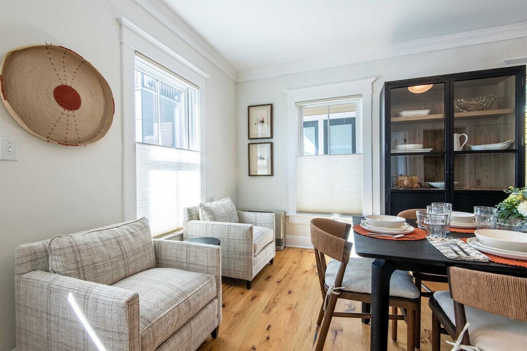 Welcome to a unique vacation rental in the heart of Victor, Idaho. This three-unit property offers a mix of modern and historic accommodations, perfect for extended families, friend groups, wedding guests, or couples traveling together while still enjoying their own space. Each unit provides a distinct experience, from a fully remodeled early 1900s railroad engineer’s home to sleek, modern townhomes built in 2020, all within walking distance to Victor’s coffee shops, breweries, restaurants, and market. The property features shared outdoor spaces, rooftop decks, and scenic porches, allowing guests to relax and spread out. Unit 1, the Engineer’s Home, sleeps five and includes a main-level bedroom, an upstairs bedroom, and a loft-style sleeping space. It boasts an open kitchen, cozy propane stove, and two porches with views of the Tetons and Big Holes. Units 2 and 3, both Mountain Modern townhomes, each sleep four and offer sleek finishes, gas fireplaces, full kitchens with stainless steel appliances, and work-from-home set-ups. Both units have rooftop decks with sweeping views of the Big Hole Mountains. The property is work-ready with fast Wi-Fi and multiple desks for remote work. Guests can enjoy the shared outdoor areas, including decks, porches, and rooftop terraces, ideal for group bookings. Whether renting one unit or all three, guests will find charm, convenience, and comfort in this walkable location. Camp Victor is ideally located for year-round outdoor exploration. It is just 43 minutes from Grand Teton National Park and 1 hour and 54 minutes from Yellowstone’s South Entrance. Ski enthusiasts will appreciate the proximity to Grand Targhee Resort, 43 minutes away, and Jackson Hole Mountain Resort, just 36 minutes away. The property is also conveniently located near area towns and airports, with Driggs only 11 minutes away, Jackson, WY, 37 minutes away, Idaho Falls Airport 1 hour and 12 minutes away, and Jackson Hole Airport 50 minutes away. Guests are encouraged to enjoy the privacy of the home, with a team available 24/7 for any urgent needs. The property is non-smoking and does not allow parties, ensuring a peaceful environment for all guests. The property is equipped with fast Wi-Fi and multiple desks, making it ideal for remote work. Each unit offers a comfortable work-from-home set-up, ensuring guests can stay connected and productive during their stay.