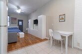 This amazing studio apartment with 1 bathroom and a private garden is located in the heart of the Upper East Side on East 81st Street between 1st and 2nd Avenue, just a few steps from the Q line subway station. Feel at home and experience life like a true New Yorker. The apartment is fully furnished with a queen-size bed, a computer desk, a couch that turns into a bed, a flat-screen LCD TV, and high-speed internet (Wi-Fi). The fully equipped kitchen includes a refrigerator, electric kettle, microwave, stove, dishes, and more. You'll find plenty of storage space and everything you might need to settle in and live comfortably. Utilities such as electricity, gas, and internet are not included in the monthly rent and will cost $330 a month, with a rate of $350 per month between June 1st and October 1st. There is a pet fee that varies between $250 and $350. A late check-in fee of $50 applies after 10 pm and $100 after midnight. Situated in the vibrant Upper East Side, this apartment offers convenient access to public transportation and is surrounded by a variety of dining, shopping, and entertainment options. Experience the neighborhood's walkability and enjoy the proximity to iconic New York attractions. Check-in must be coordinated in advance at least 48 hours prior to arrival. For last-minute bookings, a few hours' notice is required. A valid government-issued photo ID is required at check-in for safety and security. Access to the mailbox is not guaranteed, but you can receive packages without any issue. An AC unit will be installed around Memorial Weekend. In some cases, between June 1st and September 1st, the minimum stay will be 90 days. If you require early check-in, late check-out, or have any special requests (e.g. additional guests, luggage storage), please submit them in writing in advance. All requests are subject to availability and may incur an additional fee if approved. As part of our standard guest verification process, the partner will request that you complete a short application and authorize a background check a few weeks prior to arrival. Instructions will be provided closer to your check-in date. Please note: A $75 application fee may apply.