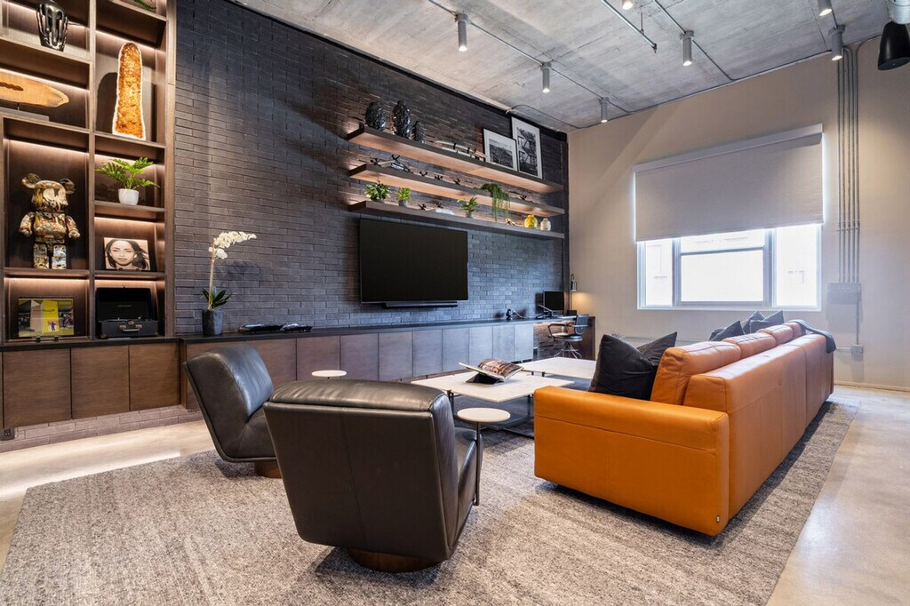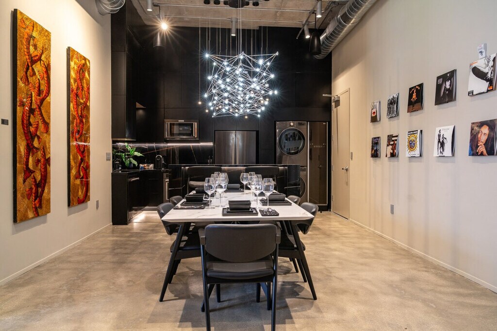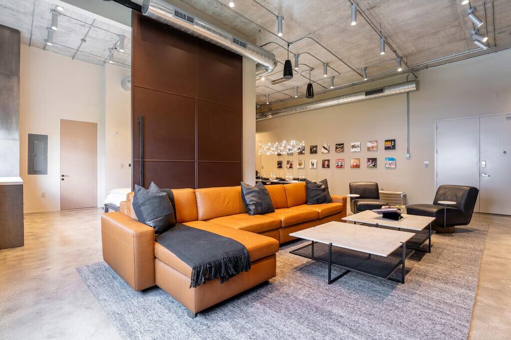 Spacious open- concept Loft featuring high ceilings and concrete floors. 1,463 Sq.Ft space ideal for residence, creative studio or office. Combining living/dining area. 2 beds/ 1 full bathroom and laundry area. Fully equipped contemporary kitchen.