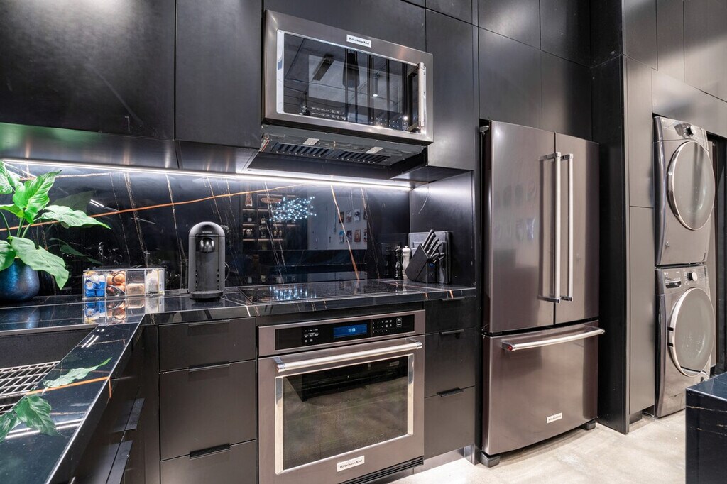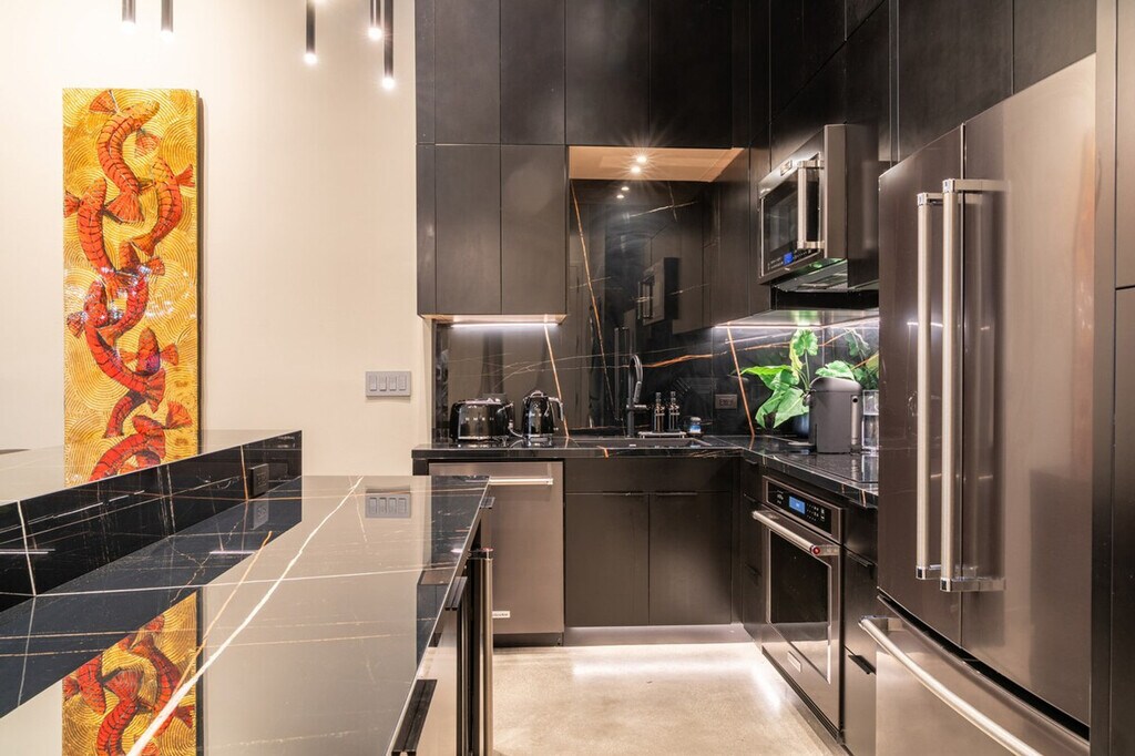 Located in the heart of the Wynwood Arts District, this 1-bedroom, 1-bath condo offers a walkable location just steps away from top attractions like the Wynwood Walls and the Wynwood Marketplace, and only 7 miles from Miami Beach. Immerse yourself in luxury with updated appliances, high-end furnishings, and modern decor. Spend your days enjoying the local architecture, pedestrian-friendly Beachwalk, and sunny beaches before relaxing on the rooftop patio. This single-story condo is on the building's 4th floor and offers step-free access via the elevator. Newly remodeled in 2024, this condo features high-speed Wi-Fi, a smart TV, a Sonos sound system, and access to a community rooftop pool and patio. The bedroom includes a king bed, while the living area offers a queen sleeper sofa. The open floor plan includes a workspace and dining table, complemented by branded robes, NEST products, and updated decor. The kitchen is fully equipped with a dishwasher, Nespresso machine with 10 pods, fridge, stove, oven, microwave, beverage fridge, dishware, flatware, glassware, stemware, trash bags, paper towels, and cooking basics. Parking is available in a community lot for one vehicle, with additional paid parking options in a first-come, first-served lot and paid street parking accessible via an app. Situated in a vibrant neighborhood, this condo is perfect for exploring the Wynwood Arts District. With a walkable location, guests can easily visit nearby attractions such as the Wynwood Walls and Wynwood Marketplace. Miami Beach is just 7 miles away, offering pedestrian-friendly Beachwalks and sunny beaches for a perfect day out. Quiet hours are observed from 10:00 PM to 7:00 AM. The condo features a Ring doorbell with an exterior security camera facing the front outdoor entry, recording video and sound when motion is detected or the doorbell is pressed. The only bathroom is accessible through the bedroom, requiring guests in the living room to pass through the bedroom to use it. No smoking, pets, events, parties, or large gatherings are allowed. Guests must be at least 25 years old to book, and photo ID may be required upon check-in. The condo includes a workspace with high-speed Wi-Fi, making it ideal for remote work. A dining table is also available for added convenience. [SI]