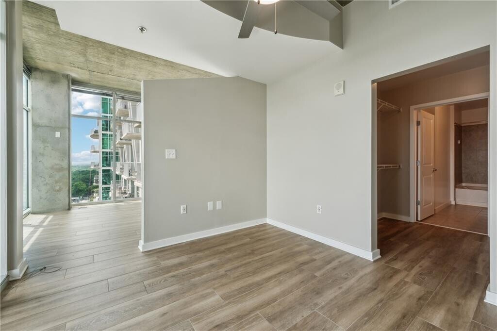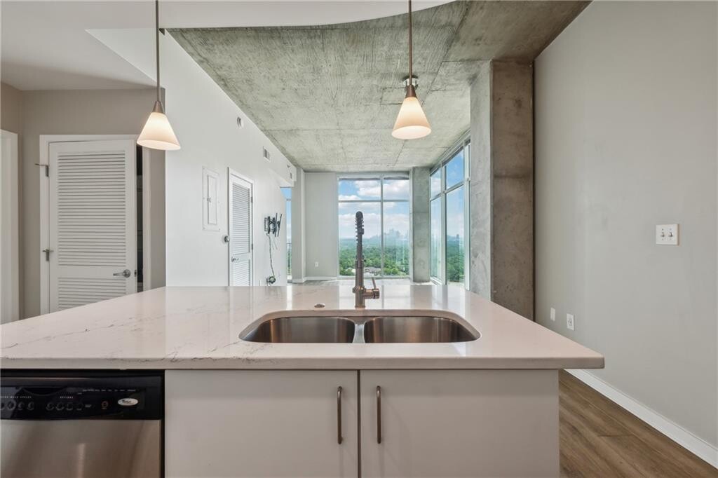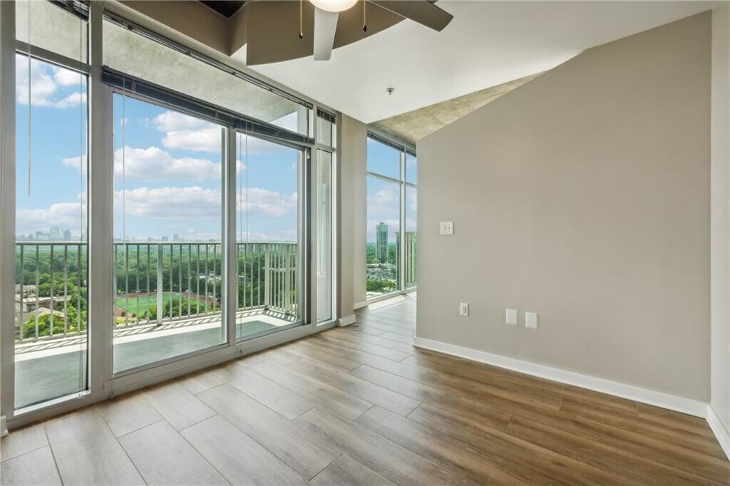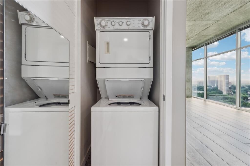 PRIME location in Buckhead! This beautiful corner unit on the 16th floor features exceptional views of the vibrant Buckhead Village District. The sought-after floorplan includes floor-to-ceiling windows with automatic blinds,an extra wall of windows,and tall ceilings that flood the space with natural light. Track lighting and hardwood floors add a touch of elegance,while new paint provides a fresh and modern feel. A The spacious kitchen features granite countertops,a kitchen island/breakfast bar,stainless steel appliances,upgraded refrigerator and dishwasher,and white cabinetry,perfect for everyday living and entertaining. A well-designed dry-bar offers thoughtful organization and additional storage in the living/dining area. The tiled laundry includes a stackable washer and dryer - with space for a wardrobe in the other half of the laundry room! An additional closet has upgraded shelving. The bedroom features automatic blinds and access to the spacious balcony. The bath features a beautiful tiled shower and spacious vanity. Upgraded walk-in closet in primary is equipped with custom shelving for ample storage and organization. Smart lighting enabled. Residents have access to exceptional amenities,including a clubroom,swimming pool,grills,a business center and a professional grade fitness center with free weights,machines,and Pelotons. A concierge service adds an extra layer of luxury and security. Located close to easy commuter and transportation options as well as the best restaurants and shopping in Atlanta! Available for 12-month lease. Tenants are responsible for all utilities.