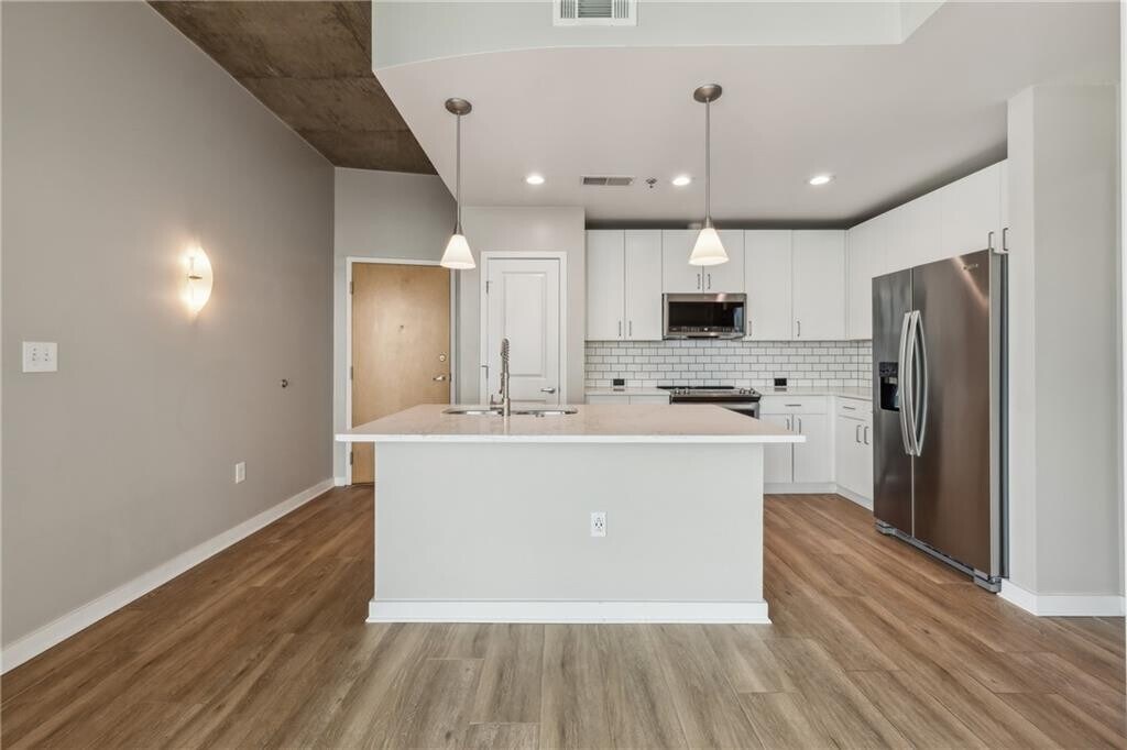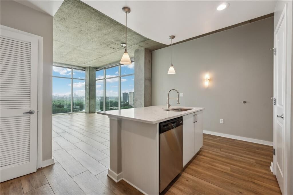 Kris PerkinsPRIME location in Buckhead! This beautiful corner unit on the 16th floor features exceptional views of the vibrant Buckhead Village District. The sought-after floorplan includes floor-to-ceiling windows with automatic blinds, an extra wall of windows, and tall ceilings that flood the space with natural light. Track lighting and hardwood floors add a touch of elegance, while new paint provides a fresh and modern feel. A The spacious kitchen features granite countertops, a kitchen island/breakfast bar, stainless steel appliances, upgraded refrigerator and dishwasher, and white cabinetry, perfect for everyday living and entertaining. A well-designed dry-bar offers thoughtful organization and additional storage in the living/dining area. The tiled laundry includes a stackable washer and dryer - with space for a wardrobe in the other half of the laundry room! An additional closet has upgraded shelving. The bedroom features automatic blinds and access to the spacious balcony. The bath features a beautiful tiled shower and spacious vanity. Upgraded walk-in closet in primary is equipped with custom shelving for ample storage and organization. Smart lighting enabled. Residents have access to exceptional amenities, including a clubroom, swimming pool, grills, a business center and a professional grade fitness center with free weights, machines, and Pelotons. A concierge service adds an extra layer of luxury and security. Located close to easy commuter and transportation options as well as the best restaurants and shopping in Atlanta! Available for 12-month lease. Tenants are responsible for all utilities.