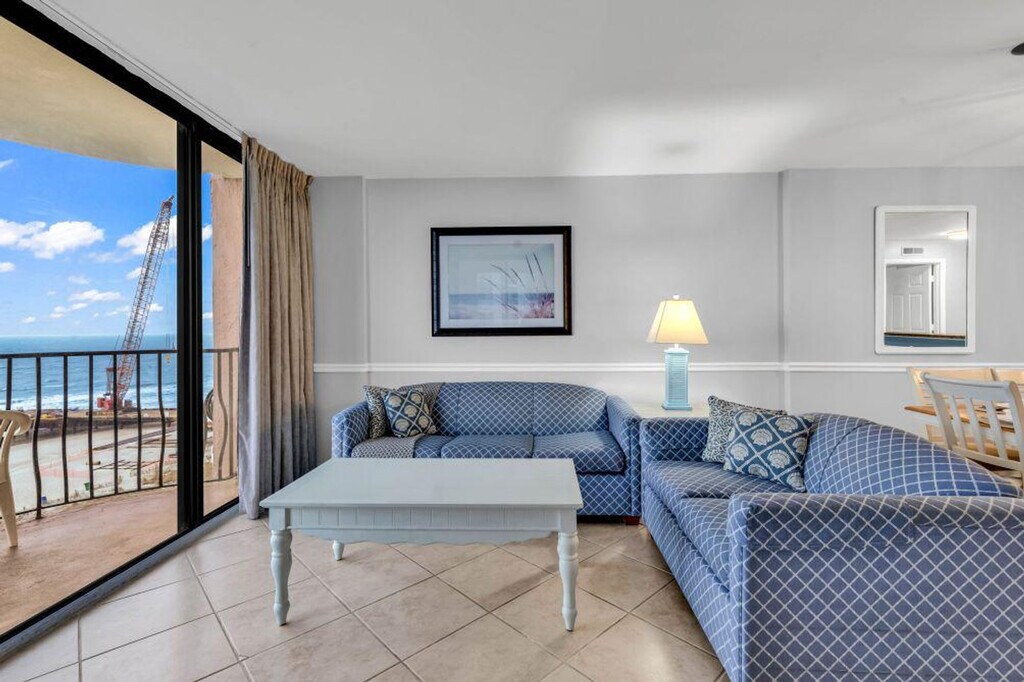 Welcome to Palms Resort 701, your ultimate sun-soaked getaway located in the heart of Myrtle Beach, South Carolina. This beachfront condo offers a perfect blend of relaxation and adventure, making it an ideal destination for families and friends seeking a memorable vacation. Step into this spacious condo featuring three comfortable bedrooms, accommodating up to six guests. The sleeping arrangements include a king-size bed, a queen-size bed, and two twin beds, ensuring a restful night's sleep for everyone. Enjoy preparing meals in the fully equipped kitchen. Dine at the elegant dining table or take your meals outside to the balcony, where you can savor stunning ocean views and the refreshing sea breeze. Palms Resort 701 boasts a variety of amenities, including shared outdoor and indoor pools, a hot tub, and direct beach access, ensuring endless fun for guests of all ages. Free parking space is available for two cars. Whether you're here for a short getaway or an extended stay, Palms Resort 701 offers a perfect blend of comfort, convenience, and coastal charm. Local attractions include the Boardwalk, Broadway at the Beach, WonderWorks, Myrtle Beach Sky Wheel, Myrtle Waves Water Park, Family Kingdom Amusement Park, Dragon's Lair at Broadway at the Beach, Jurassic Golf, Jungle Safari, Captain Hook's Adventure courses, Nascar SpeedPark, Brookgreen Gardens, and Championship Golf. A new pier is currently under construction near the property, expected to continue through 2026, which may cause occasional noise or limited access to certain areas. The city is also working on the pipes in the ocean, which may result in loud noise most of the time. Coastline Pest Control performs mandatory preventative treatments in every unit on the 2nd Tuesday of the month. For same-day late check-ins, you need to get the host's approval before booking. Grilling is prohibited with a penalty of $200 for violations. Bicycles, motorcycles, mopeds, and trailers are not allowed. A State Identification Card or Driver License copy will be requested upon booking. Smoking in the unit or on the balcony will incur a $250 fine plus cleaning costs. Pets are not allowed, with a $200 fine for violations. Gatherings of more than six people, including both overnight guests and visitors, are not allowed and may result in eviction. House parties and illegal substances are strictly prohibited and grounds for immediate eviction. You must be at least 21 years old to book this property. Leaving the unit later than the check-out time will incur a late check-out penalty starting from $500. Upgraded internet with speeds of 200mbs/20mbs makes it perfect for remote work from the beach. [SI]