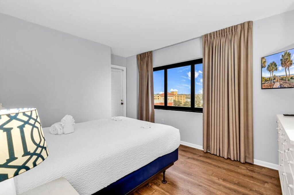 This Palms Resort apartment is located on the breathtaking beachfront of Myrtle Beach and comes with its own private balcony and panoramic views of the ocean. Whether you are here on your family vacation, a business trip, or a quick weekend getaway, you’ll find everything you need for a relaxing and unforgettable time. Start your morning with a swim in one of the indoor or outdoor pools, head down to the fitness center for a quick workout, and finish your day by the ocean, watching the best Netflix series out there: Myrtle Beach Sunset! The apartment features a balcony overlooking amazing oceanfront views, indoor and outdoor pools, indoor and outdoor whirlpools, an outdoor hot tub, a kiddie pool, a fitness room, air conditioning, internet/Wi-Fi, and a smart TV. The apartment offers free parking space for 2 cars. If you would like to venture out of the resort, there are plenty of crowd-favorite attractions, including Sky Wheel Myrtle Beach, Ripley's Aquarium, Broadway at the Beach, and more! For your convenience, Walmart is located on 38th Avenue. Close to all Fun In the Sun activities, including fishing, swimming, water parks, boardwalk, and restaurants. A new pier is currently under construction near the property, expected to continue through some time in 2026, which may cause occasional noise or limited access to certain areas. Coastline Pest Control performs mandatory preventative treatments in every unit on the 2nd Tuesday of the month. The city is currently working on the pipes in the ocean, which may result in loud noise most of the time. For same-day late check-ins, you need to get the host's approval before booking. Grilling is prohibited with a penalty of $200 for violations. Bicycles, motorcycles, mopeds, and trailers are not allowed. A State Identification Card or Driver License copy will be requested upon booking. No smoking in the unit or on the balcony, with a $250 fine plus cleaning costs for violations. No pets allowed with a $200 fine for violations. Gatherings of more than 6 people including both overnight guests and visitors are not allowed and may be subject to eviction. House parties and illegal substances are strictly prohibited and grounds for immediate eviction. You must be at least 21 years old to book this property. Leaving the unit later than the check-out time will incur a late check-out penalty starting from $500. Upgraded internet is perfect for remote work from the beach with speeds of 200mbs/20mbs per unit. [SI]
