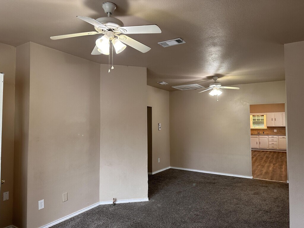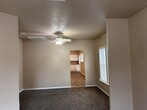 Spacious 3 bedroom, 2 bathroom home for rent with a large yard and two-car covered carport attached. Washer and dryer hookups available. The backyard is fenced and has beautiful mature trees. The home is situated on a huge corner lot.