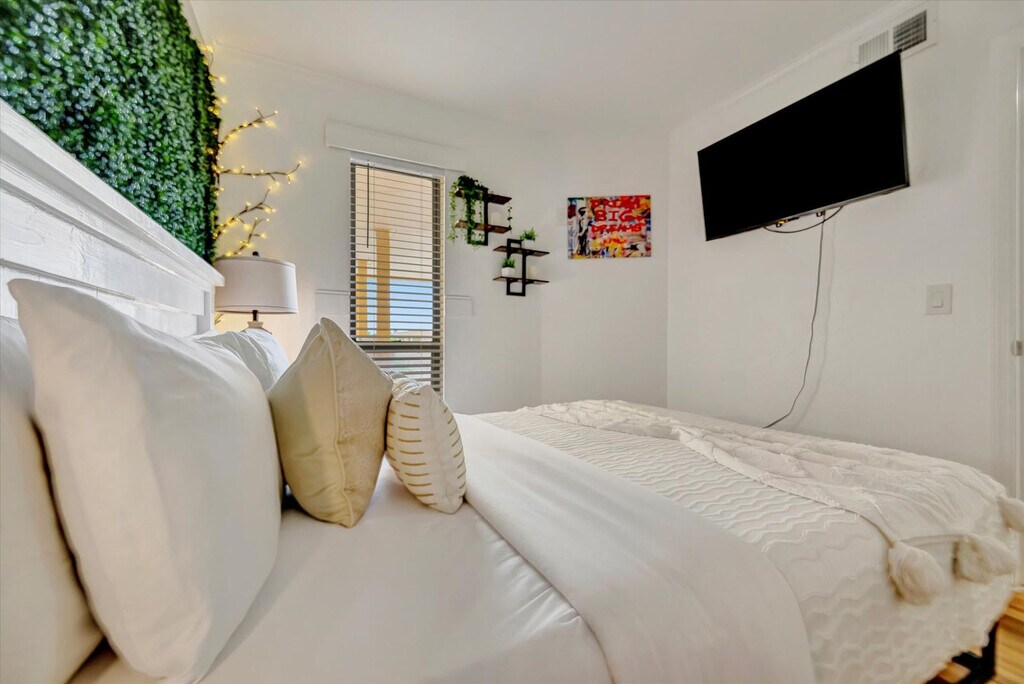 Welcome to The Palm, a luxury waterfront escape in Tampa where you can feel at home in this designer 1-bedroom condo offering breathtaking Gulf views. This condo offers a cozy atmosphere with a real fireplace and egg chair. The full kitchen features stainless steel appliances, a spice rack with over 25 spices and basic oils, a Cuisinart coffee maker with an exotic coffee selection, a unique hot sauce collection, and a charcuterie board with a cheese slicer. Entertainment options include a 60” Roku Smart TV for streaming, interior design books, and tropical mood lighting. There is also a telescope for stargazing. A queen air mattress and a Pack 'N Play are available upon request. Birthday or romantic surprise packages are available for an extra fee. Located on the water, this condo is minutes from Tampa International Airport and close to Downtown Tampa, Clearwater, and St. Pete. Nearby you'll find beaches, restaurants, and nightlife. Ben T Davis beach is only a 15-minute walk or a 3-minute drive away. Several restaurants and bars are within walking distance. Quiet hours are between 10 PM and 8 AM. A digital rental agreement must be signed and completed prior to arrival, including providing a photocopy of a legal ID and a verification selfie. Sailport permits Emotional Support and Service Animals with prior notice, written approval from the Manager, and supporting documentation provided to security upon arrival. A $100 pet fee applies. Pets are not allowed on beds or couches. Unauthorized pets incur a $250 penalty per pet and possible reservation cancellation without refund. Guests must clean up after pets; failure to do so results in a $50 penalty. Regular household pets are not allowed. The manager reserves the right to remove any pet for inappropriate behavior. If cleaners determine smoking has taken place, whether by observation or smell, a $250 penalty will be charged. If smoking is observed during the course of an active stay, the reservation may be canceled without any refund and a $250 penalty will be charged. [SI]