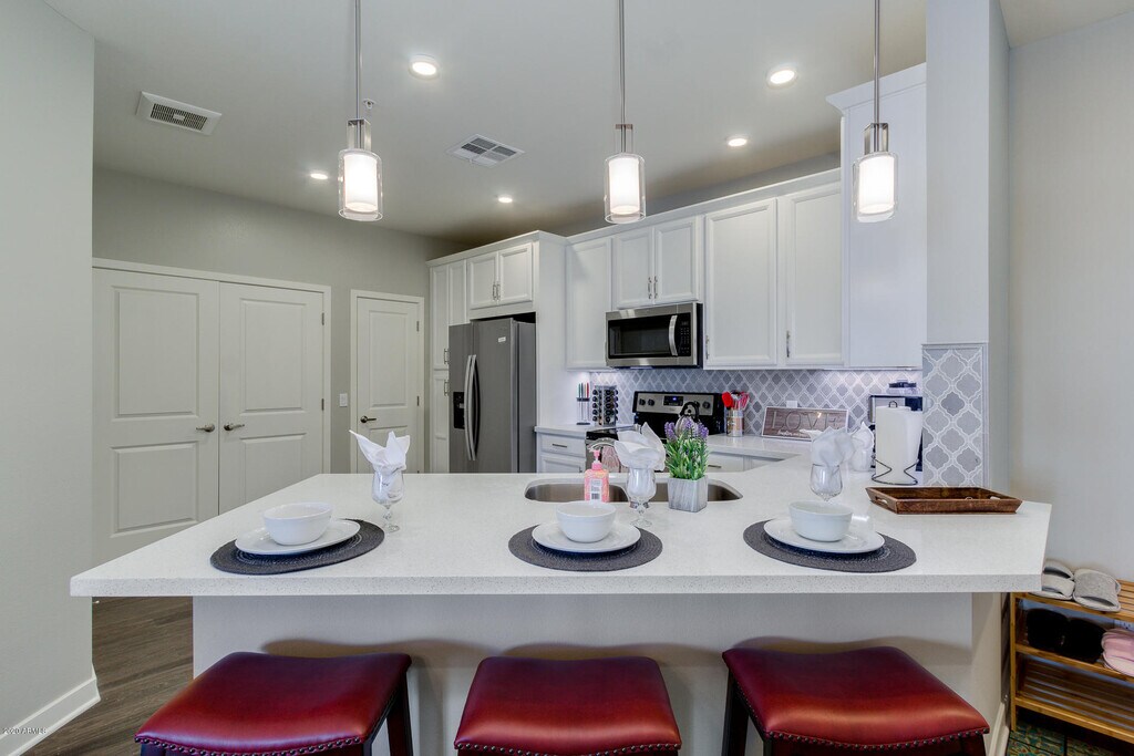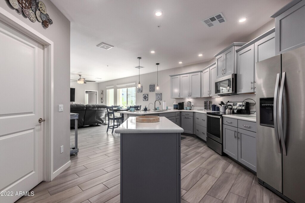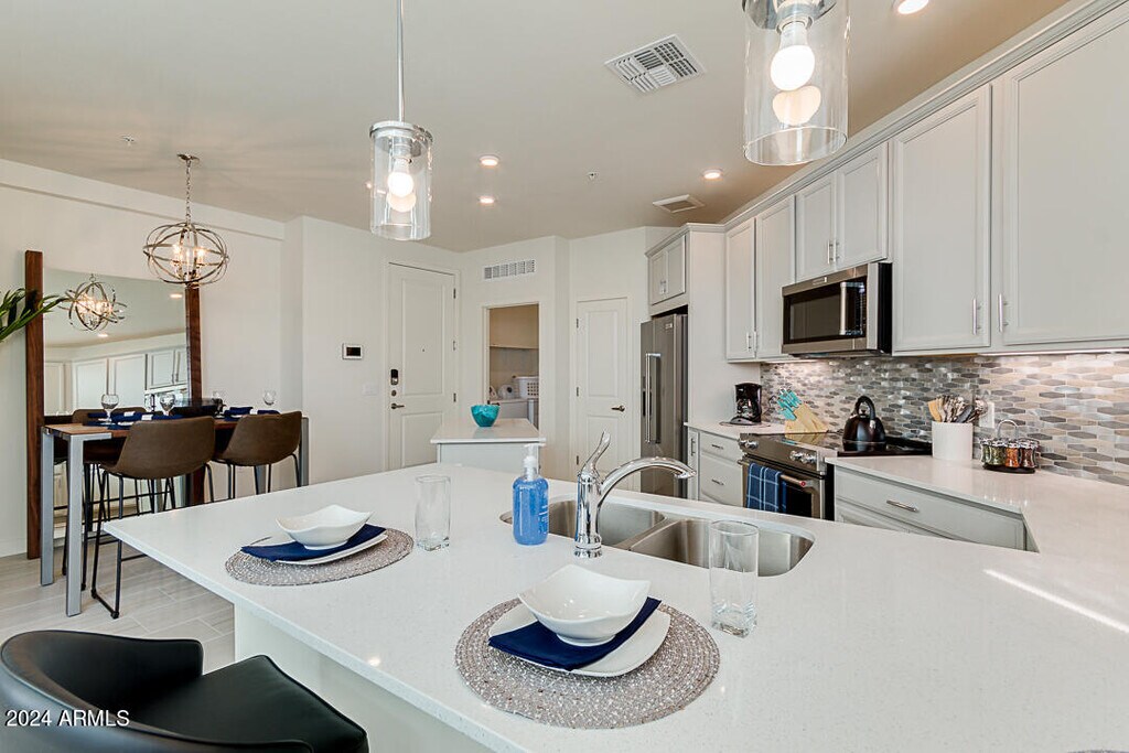 Your Arizona Vacation awaits! Enjoy living in the beautiful community of the Cays Ocotillo. ~2023 build~Discover an open layout with luxury vinyl plank floors,quartz countertops,white shaker cabinetry & stainless steel appliances. This lightly lived in property offers the perfect lock and go experience.. Spacious Primary Suite features a neutral palette with sliding glass doors to the balcony,a walk-in closet,and an ensuite with a tiled walk in shower and dual vanity. Relax at the balcony while admiring the views of the bridge. The perfect-size den can be used as an office or reading nook! Stacked washer and dryer with ample storage space. Resort-style amenities include incredible workout facility with yoga studio,steam rooms & Commercial grade Gym Equipment. Resort Style Pool & Spa,Fire-Pit,Tastefully designed community center serves as the perfect entertaining space equipped with Chef's Kitchen,TV's Pool Table,Shuffle Board,Ocotillo Golf Course and more! Premium location near chandler's best dining,shopping,and easy access to major highways. MLS ID 6953737