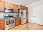 Ready to move soon? Check out this excellent condition 2 level home in great location on corner lot. Gourmet kitchen includes stainless appliances (gas range, refrigerator, dishwasher, microwave). Beautiful granite counters and open to living area. Eating bar off kitchen, just add barstools. Wood floors downstairs & carpet upstairs. Gas fireplace, forced air gas heat, central AC. Slider door leads to patio. Half bath downstairs and two full baths upstairs. Upstairs laundry has newer washer & dryer. End unit home features additional windows that allow lots of natural light. Loft area great for office space or reading nook. Spacious primary suite with ceiling fan. Primary bath has double sinks and tile counters. 2 car garage with opener and epoxy floors. Low care private outdoor space features propane fire pit. Close to schools, shopping, parks, and public transit. Tenant pays for all utilities NO Smoking/Vaping NO Pets 12 month lease 3 bed/2.5 bath 1661 sq ft $2475+ security/cleaning deposit Proof of renters liability insurance required