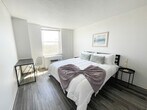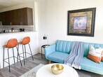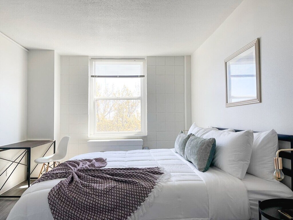 Feel at home in this refined and contemporary 1-bedroom apartment located on the 7th and 8th floors of a building equipped with an elevator. This fully furnished apartment offers a full living room area, kitchen, bedroom, and bathroom, with a futon in the living room for additional sleeping accommodations. This apartment is fully furnished with top-notch amenities, toiletries, and complementary goods to ensure an unforgettable experience. The living room, kitchen, bedroom, and bathroom are all thoughtfully designed to provide comfort and convenience. Onsite parking is available for guests on a first-come, first-serve basis. Only certified service animals are allowed, with prior approval required. An additional pet fee applies after booking, and unauthorized pets will incur a $500 fee. There is a one-pet-per-apartment limit, and only dogs are permitted. Guests have access to their unit, the fitness center, and the laundry facility. An onsite parking lot is available on a first-come, first-serve basis. The building is centrally located, offering easy access to various attractions and amenities. Smoking of any kind is prohibited and will result in a $500 fee. Quiet hours are from 10 p.m. to 8 a.m., and parties or large gatherings are not allowed. Check-in is at 4:00 p.m., and checkout is at 10:00 a.m., with fees for early check-in or late checkout. Guests cannot receive mail at this location, and the building's amenities may be unavailable due to maintenance or other factors without refund. Guests are liable for any damage or theft during their stay, and identity verification is required during virtual check-in. The apartment and all amenity areas shall not be used for any unlawful or illegal purpose. Guests shall use the apartment for residential purposes only and not conduct any commercial, industrial, or retail activity. [SI]
