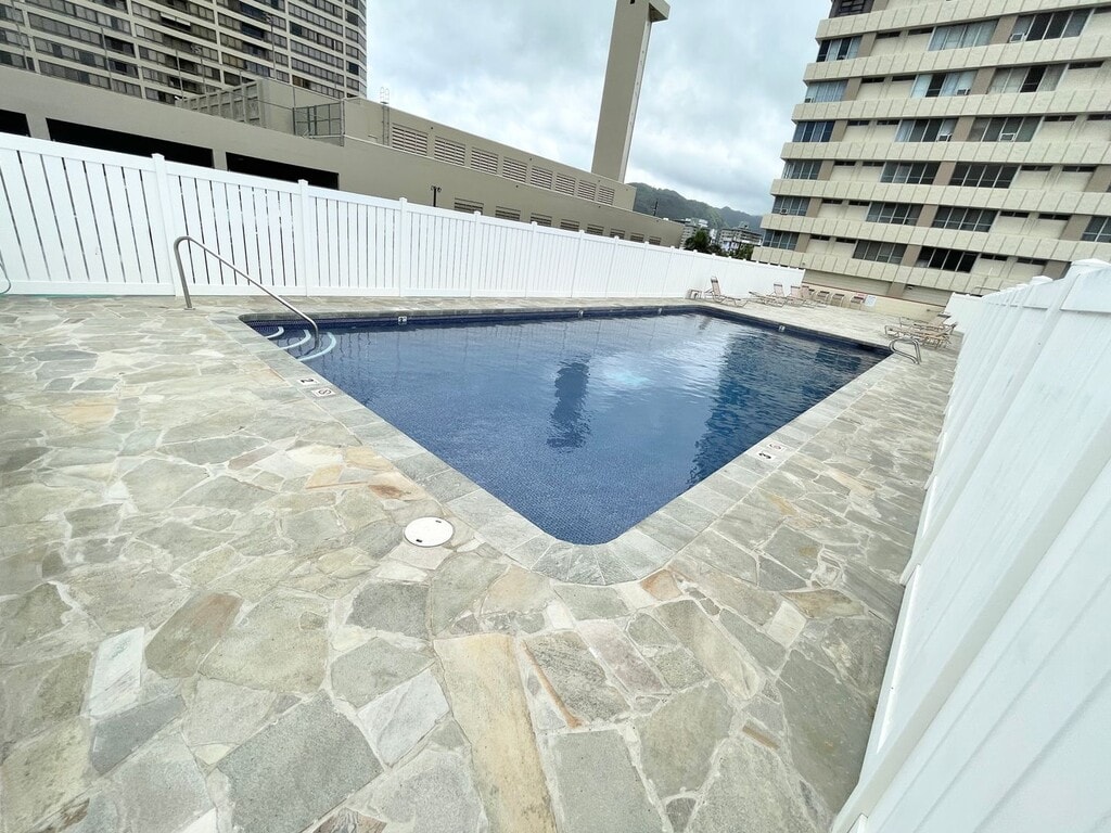 Available now at Regency Tower – a cozy studio unit located on the 22nd floor, offering cool mauka-facing views. This 400 sq. ft. unit features a window AC, new kitchen flooring, and a brand-new range hood (not shown in photos). Appliances include a refrigerator, range/oven, washer, and dryer for your convenience. One uncovered parking stall is included, located in the parking garage. Building amenities include a swimming pool, barbecue area, bike rack, security, and ample guest parking. There’s also a convenient mini-mart located on the ground floor. Enjoy the comfort of a secured building with an onsite resident manager. No pets or smoking allowed. Renters insurance is required. Monthly rent is $1,500 and includes water and sewer. One-year lease term. To schedule a showing, please text Alohi Bumanglag (RA) at KMJ Realty LLC at .